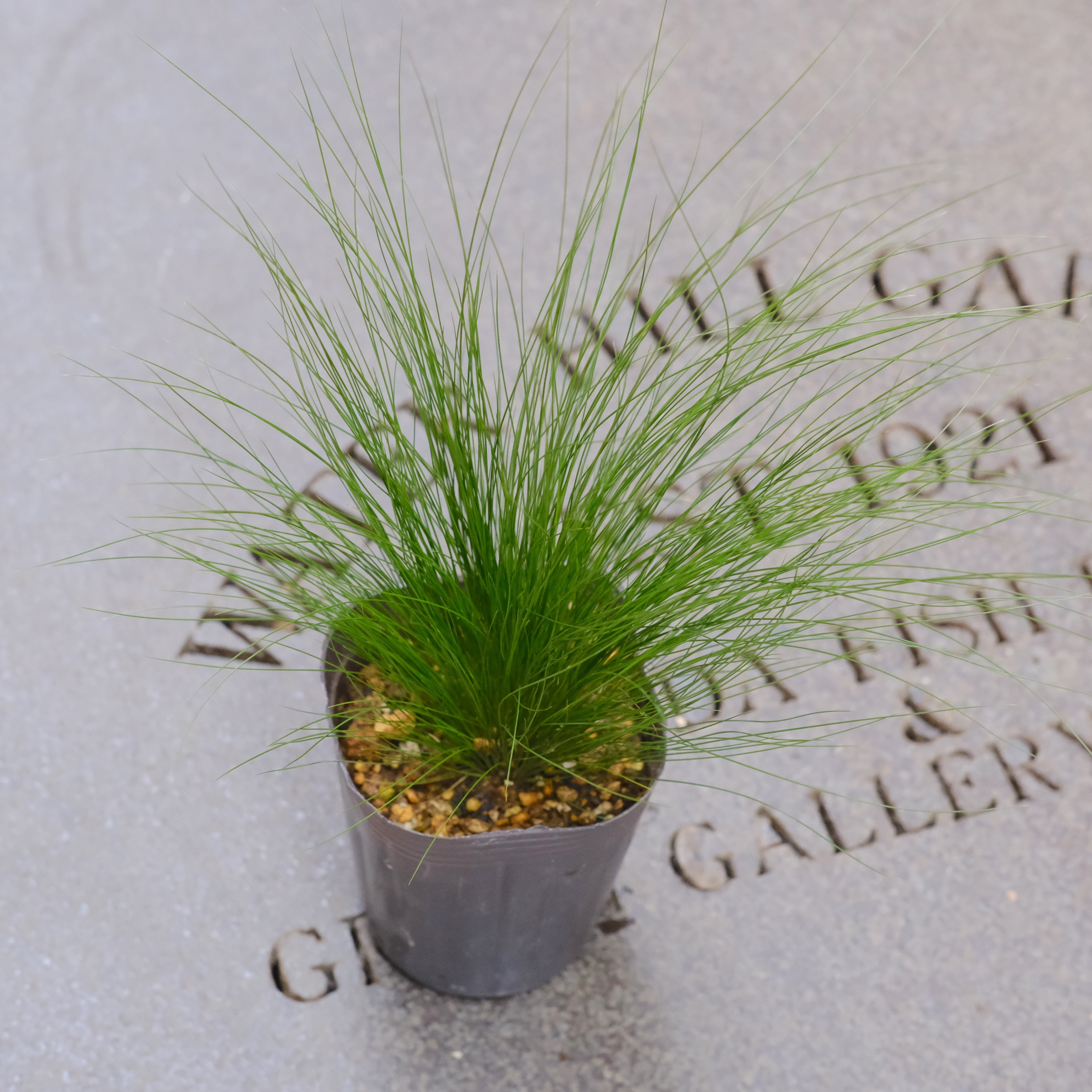 お庭にこれがあるだけでなぜか素敵に見えるから不思議です。グラスのなかではかなり小型で、使い勝手の良い品種です。髪の毛のように細い葉を茂らせ、初夏から秋には明るいベージュ色のやわらかな穂先をつけます。