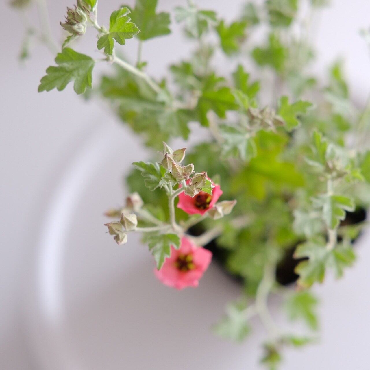 アオイの仲間で、シルバーリーフに、丸く可愛いお花が咲きます。花は1日花ですが次々に咲き、温度が高ければ年間を通して咲き続けます。
