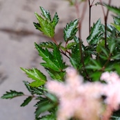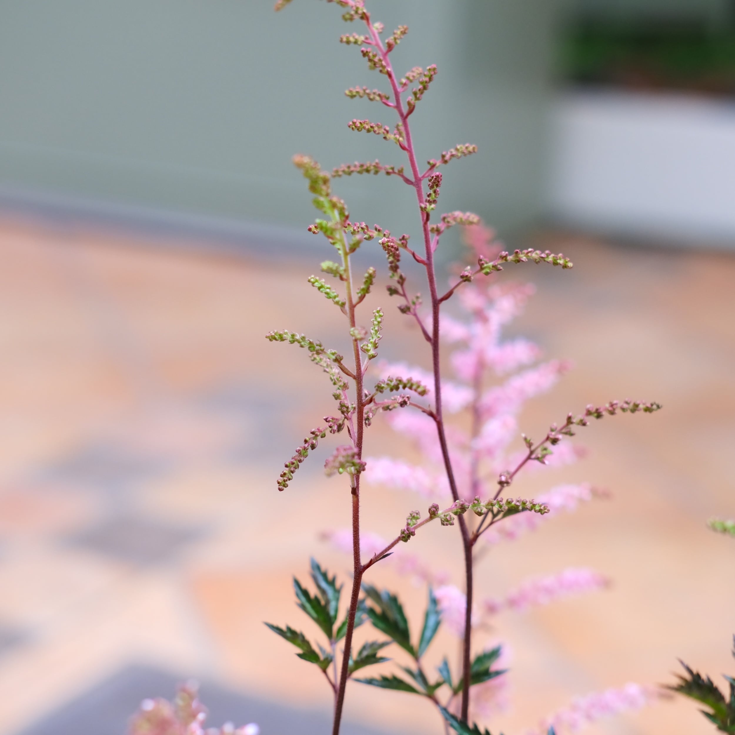 ヨーロッパで品種改良された、新しいアスチルベです。従来の品種より花上りが良いうえに花が長もちするので、お庭で長く鑑賞することが出来るんです。