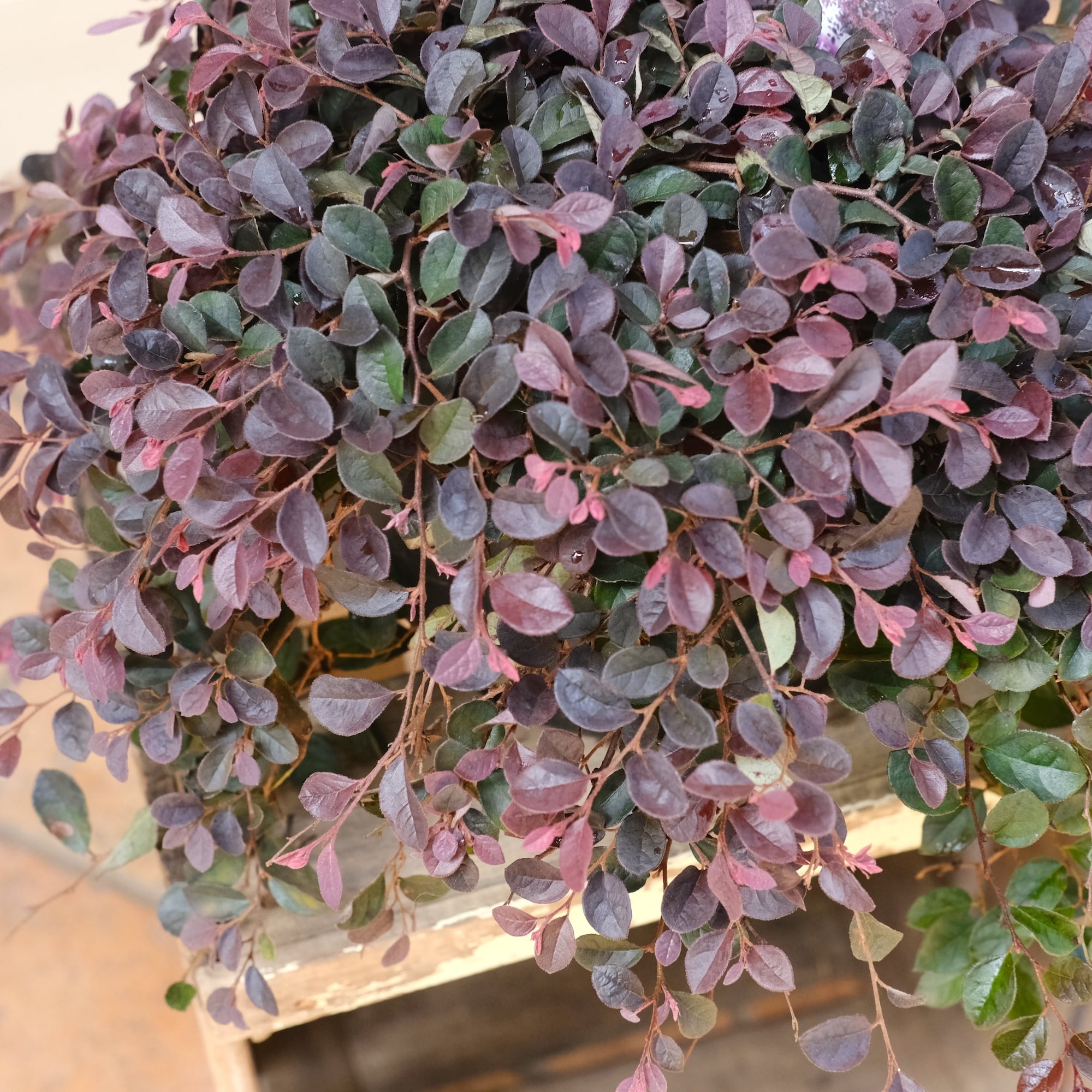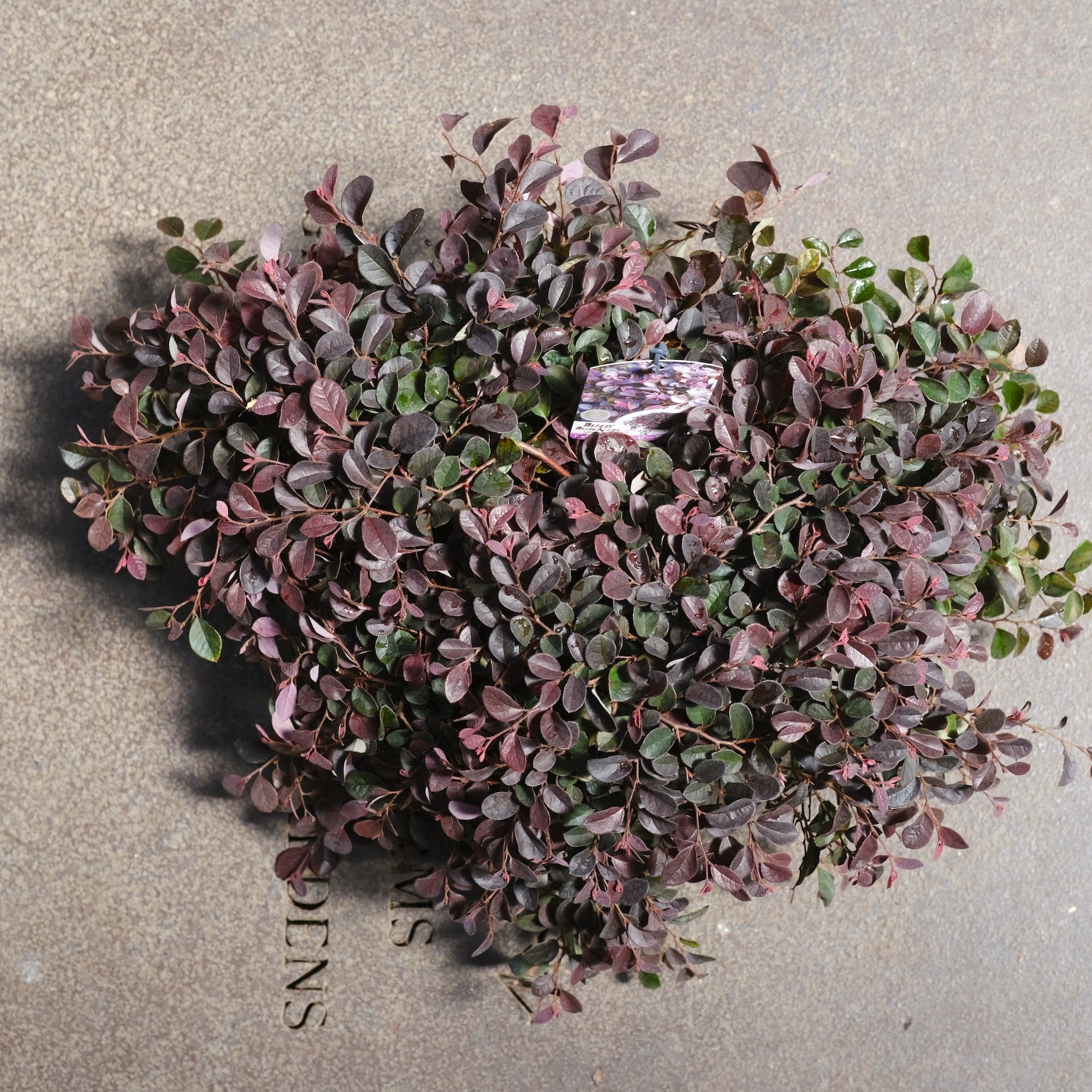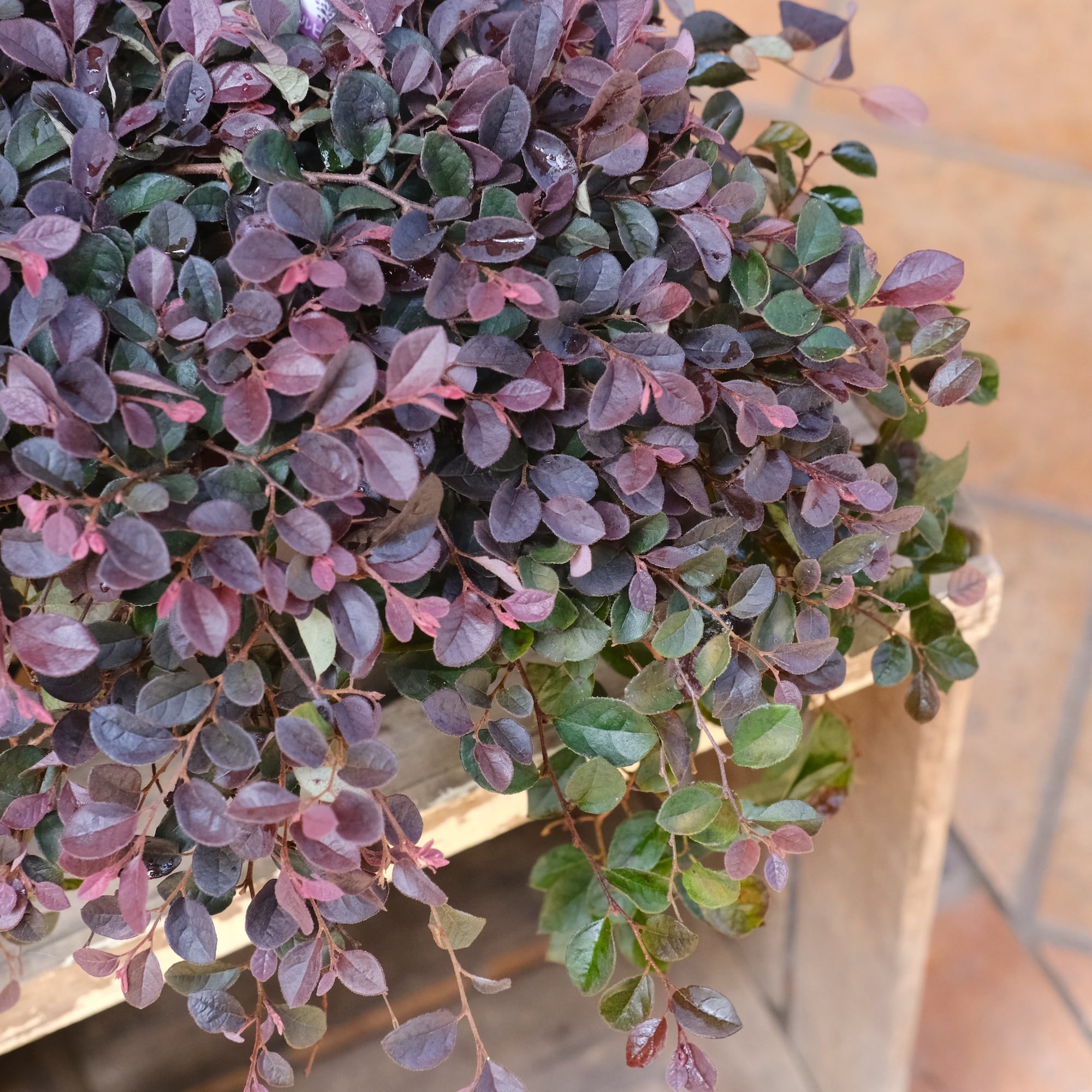 たいへん美しい銅葉色のトキワマンサクです。春にはトキワマンサクとよく似た濃いピンクの花がたくさん咲き華やかになります。環境によりますが、秋にも咲きます。-10°Cまでの耐寒性があり、ハンキング、グランドカバーに適しています。