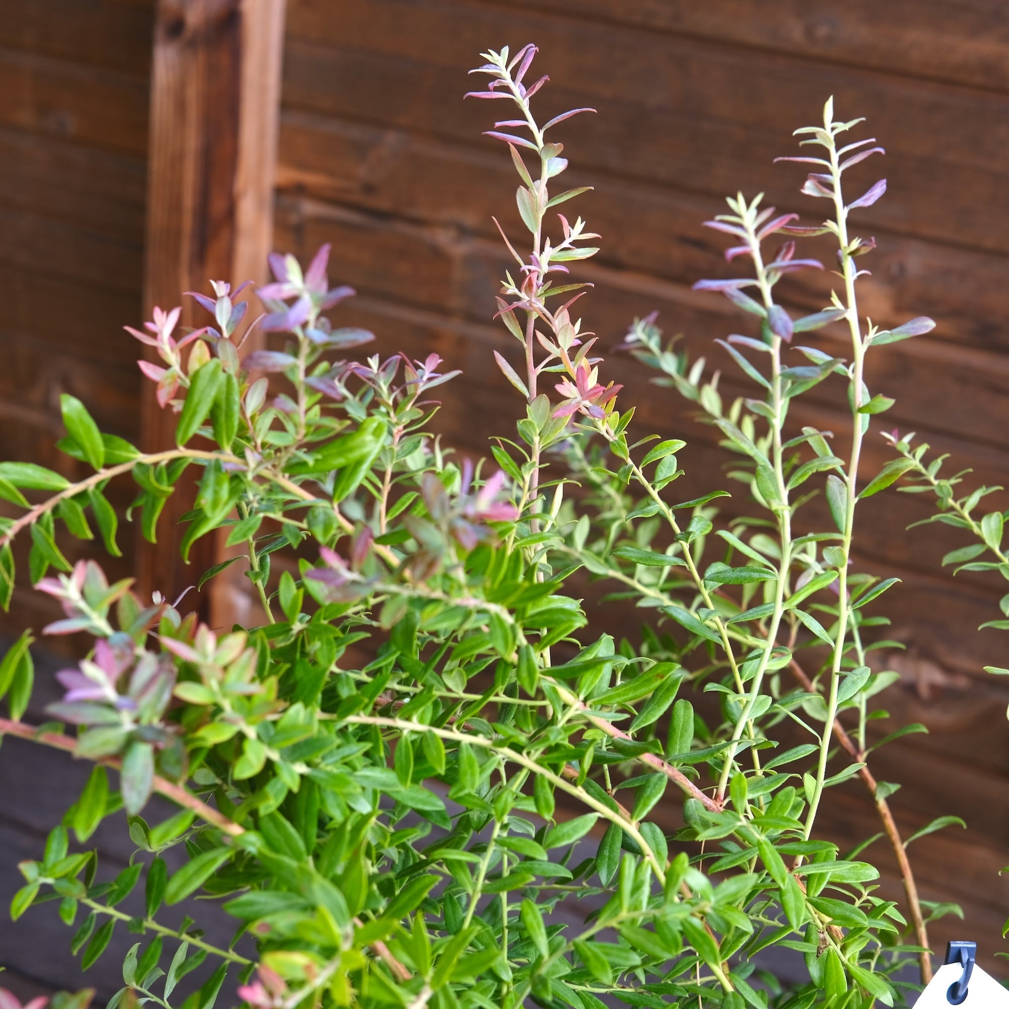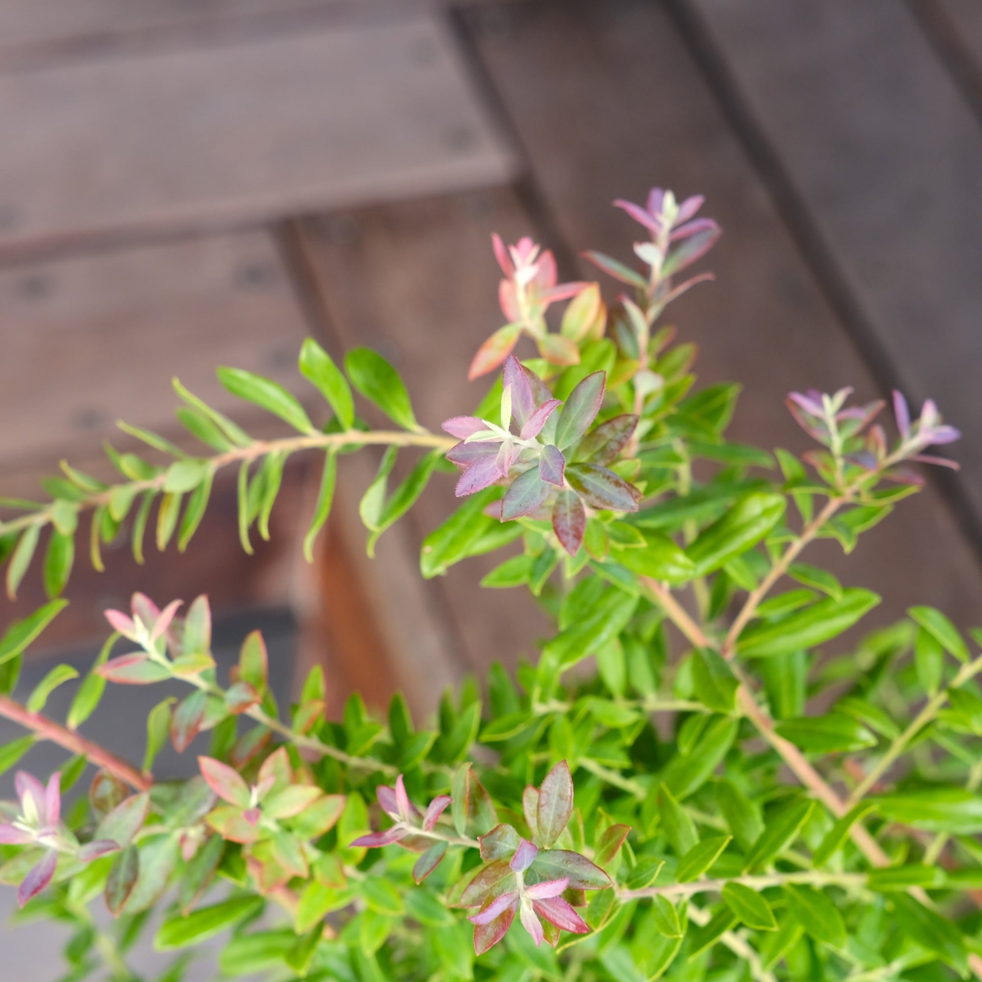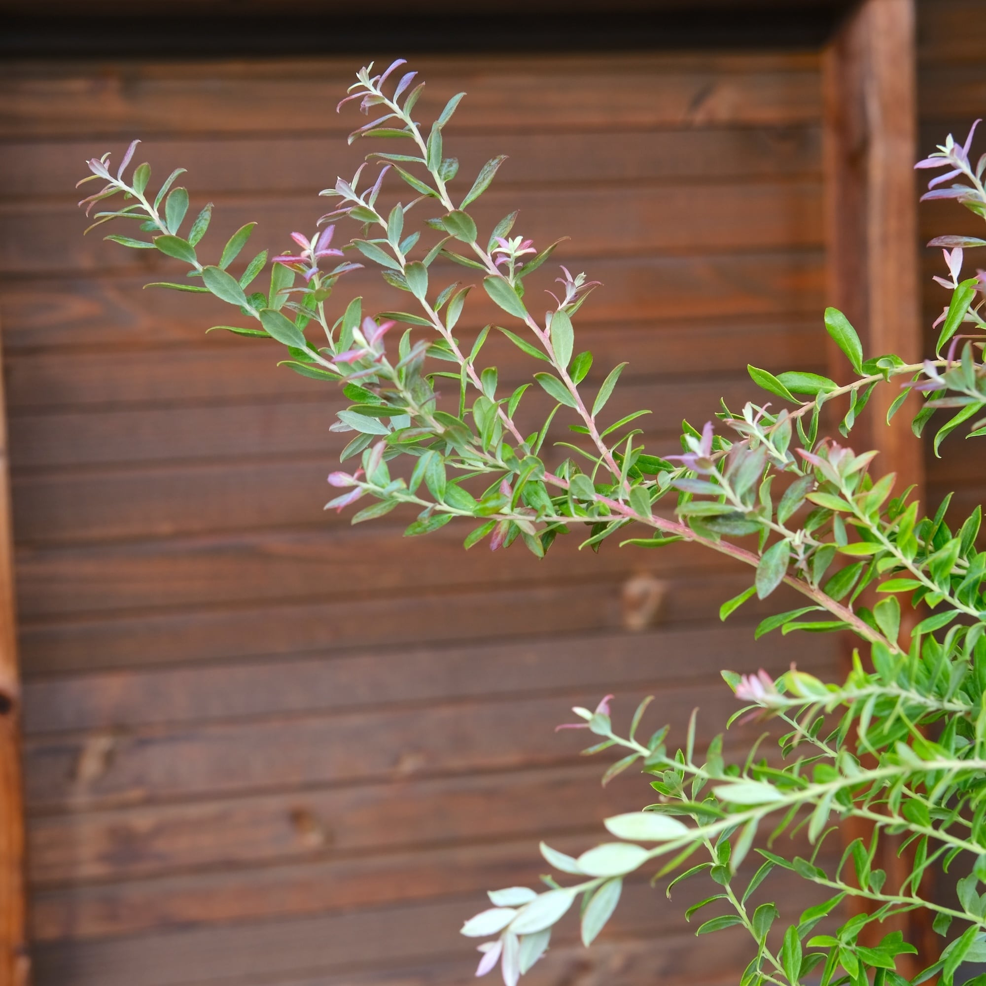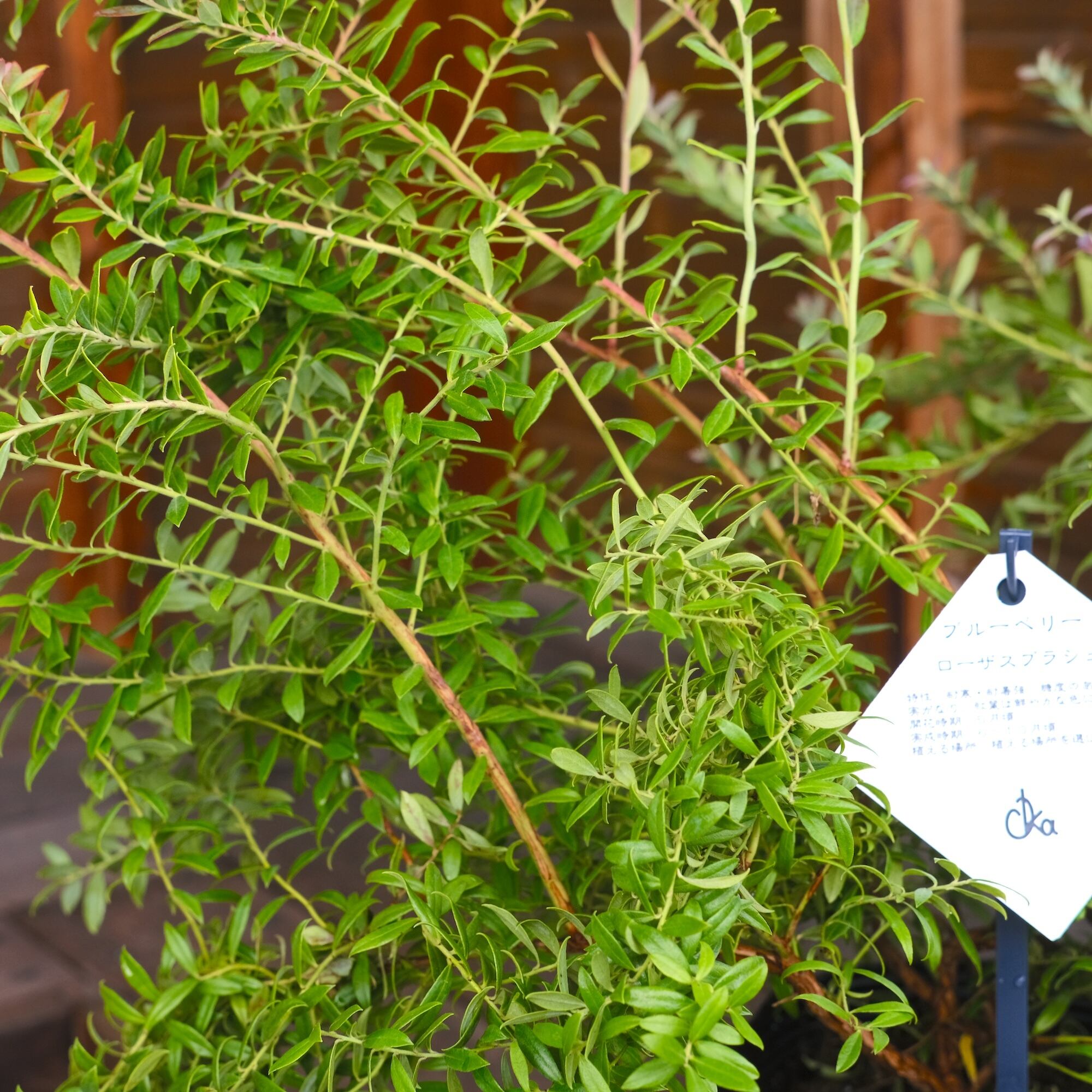 自由奔放な自然な動きの枝ぶりに、新芽は赤みを帯びておりたいへん美しいです。常緑のブルーベリーは食用には向いていないものが多いですが、こちらの果実はかなり小粒で皮が少し厚いものの甘くて美味しいのです。まさにパーフェクトなブルーベリー!大人気になりそうな予感です。