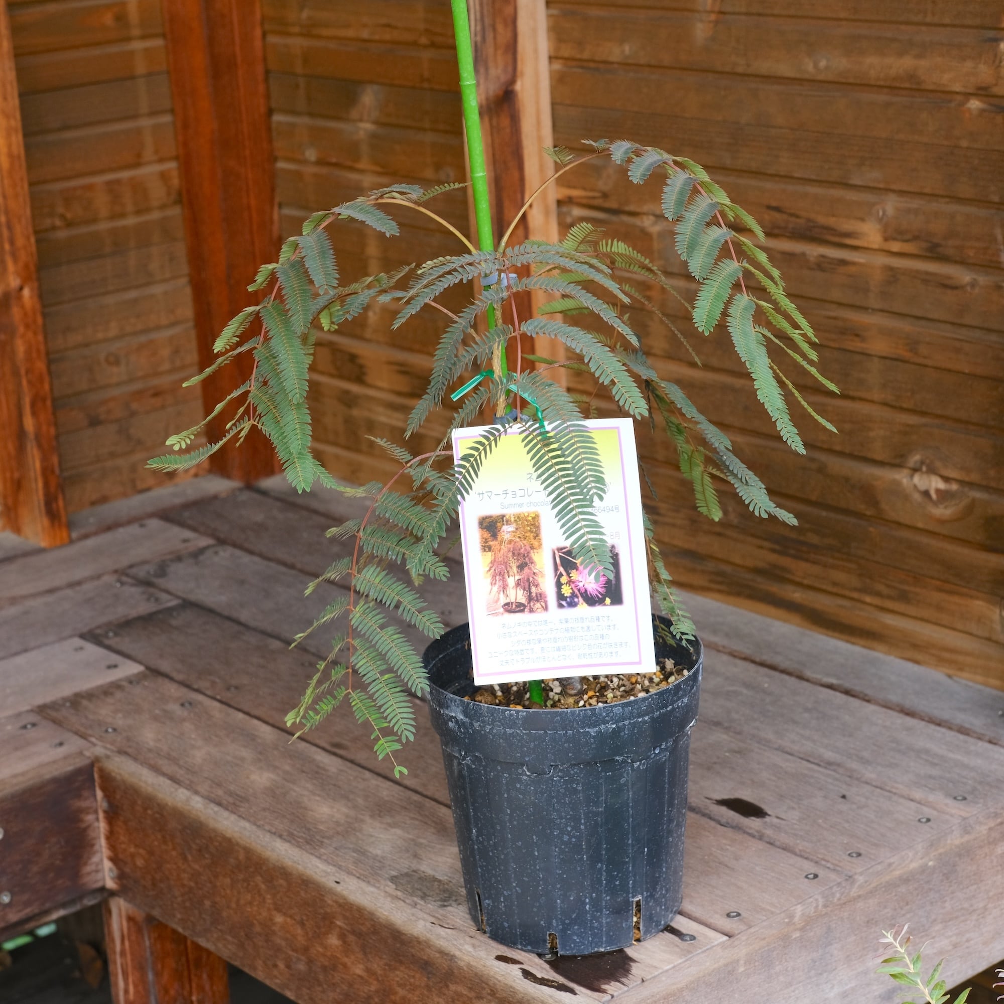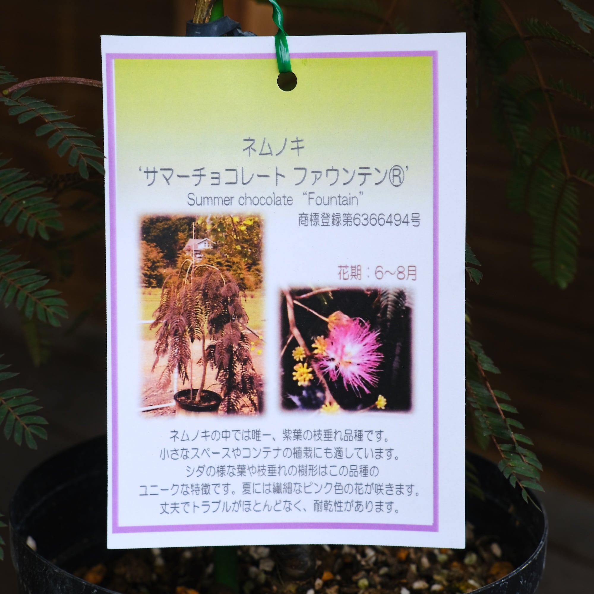 ネムノキ《 サマーチョコレートファウンテン 》は、日本生まれのネムノキ2種がアメリカで交配されて2009年に作出された品種です。2016年に日本へ入ったようですが流通することがなく、2021年からようやく生産が開始されたようです。