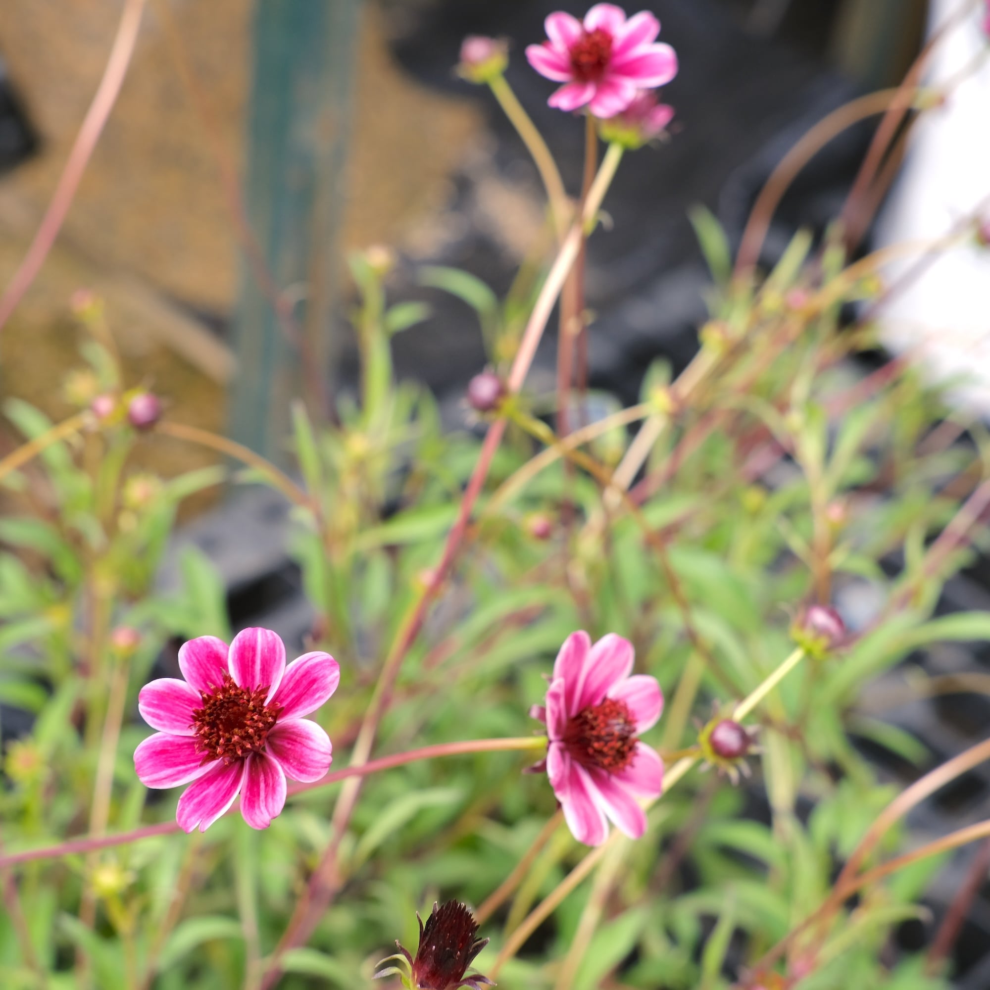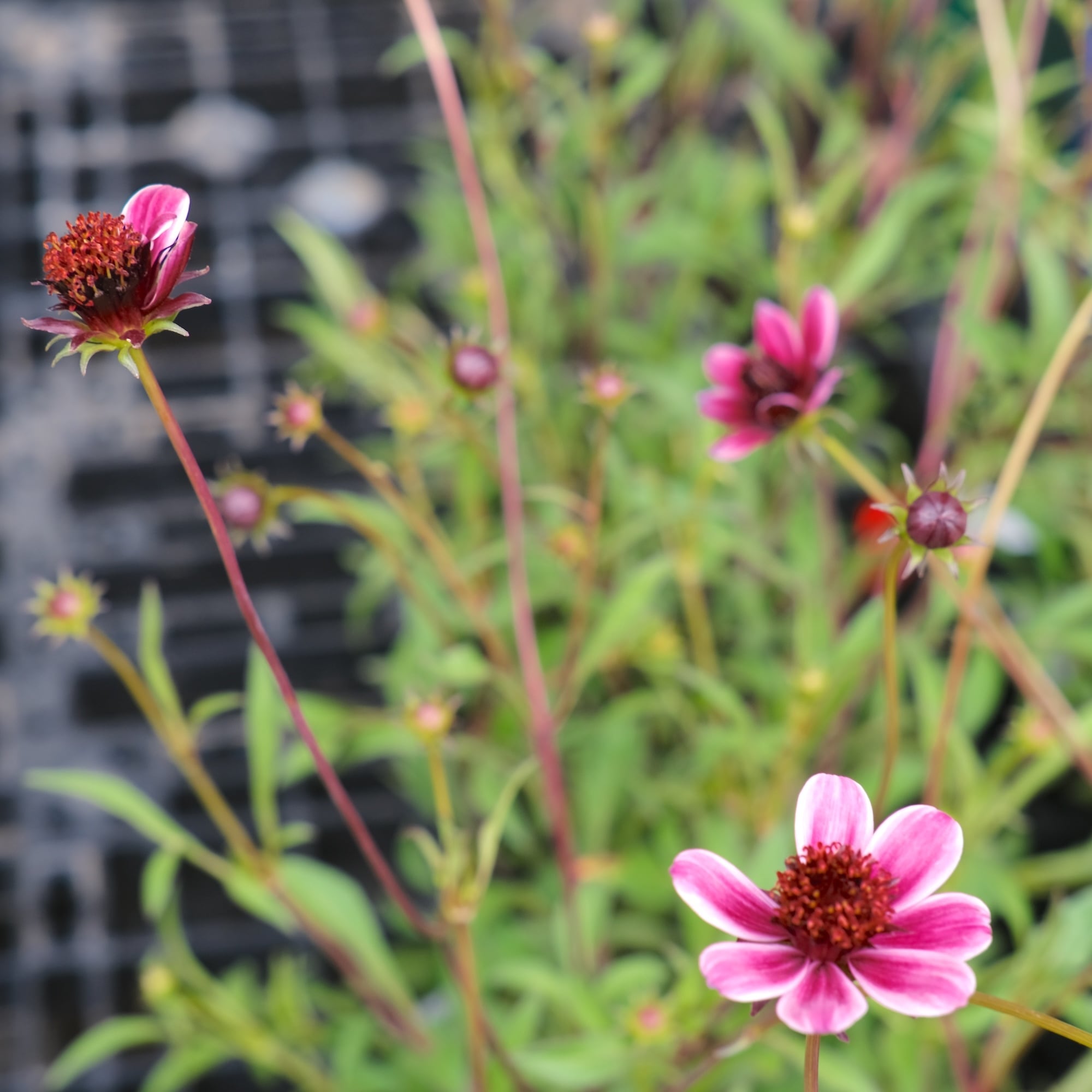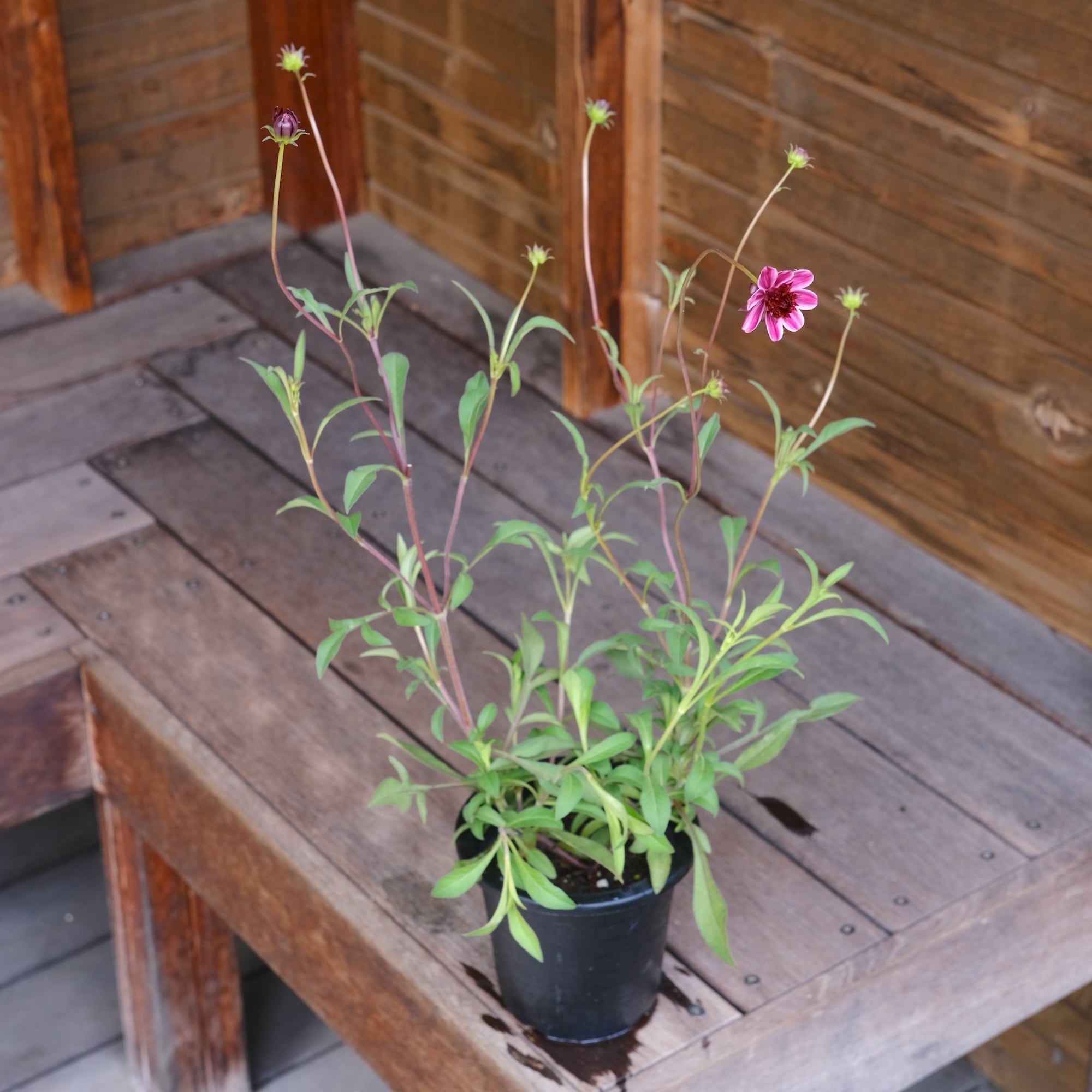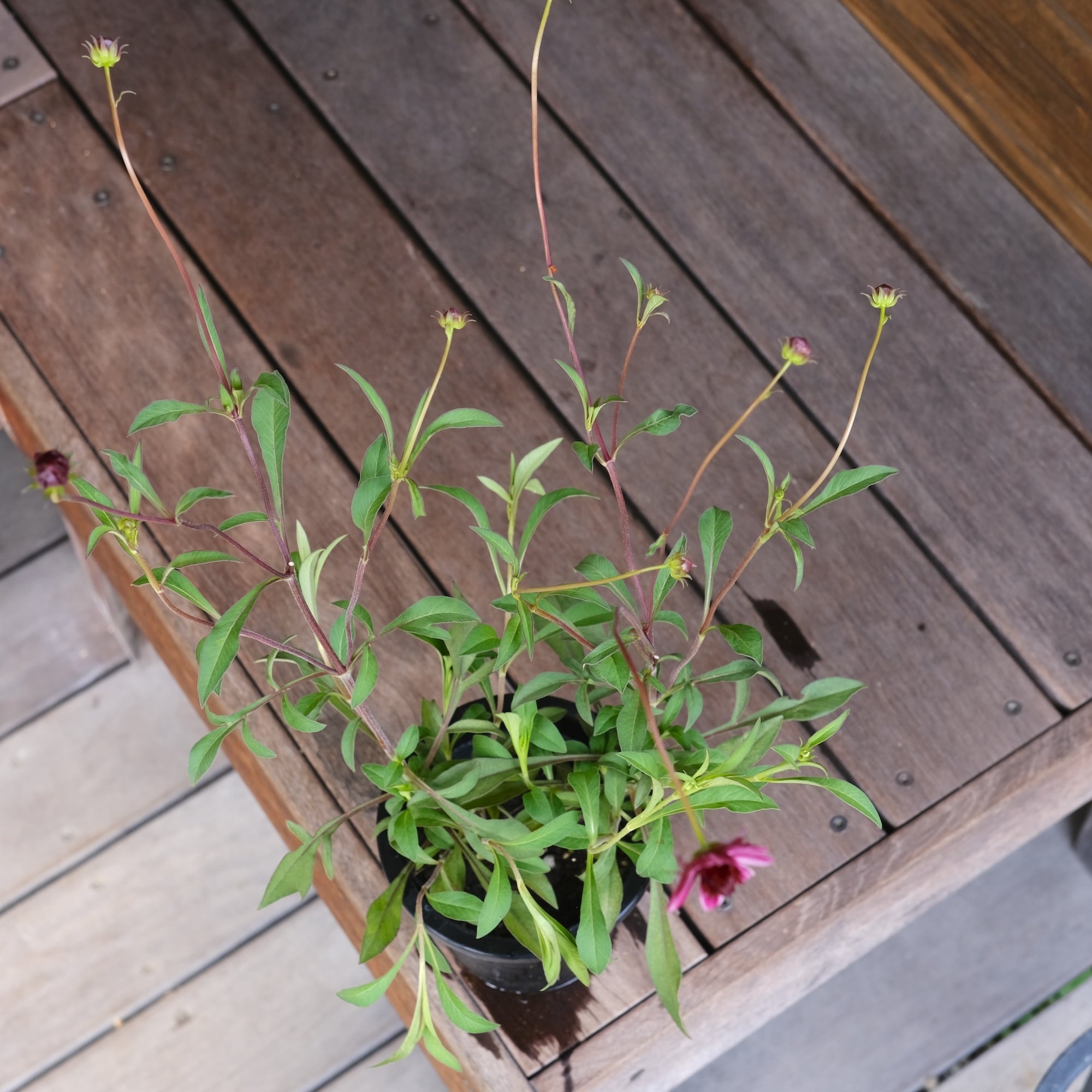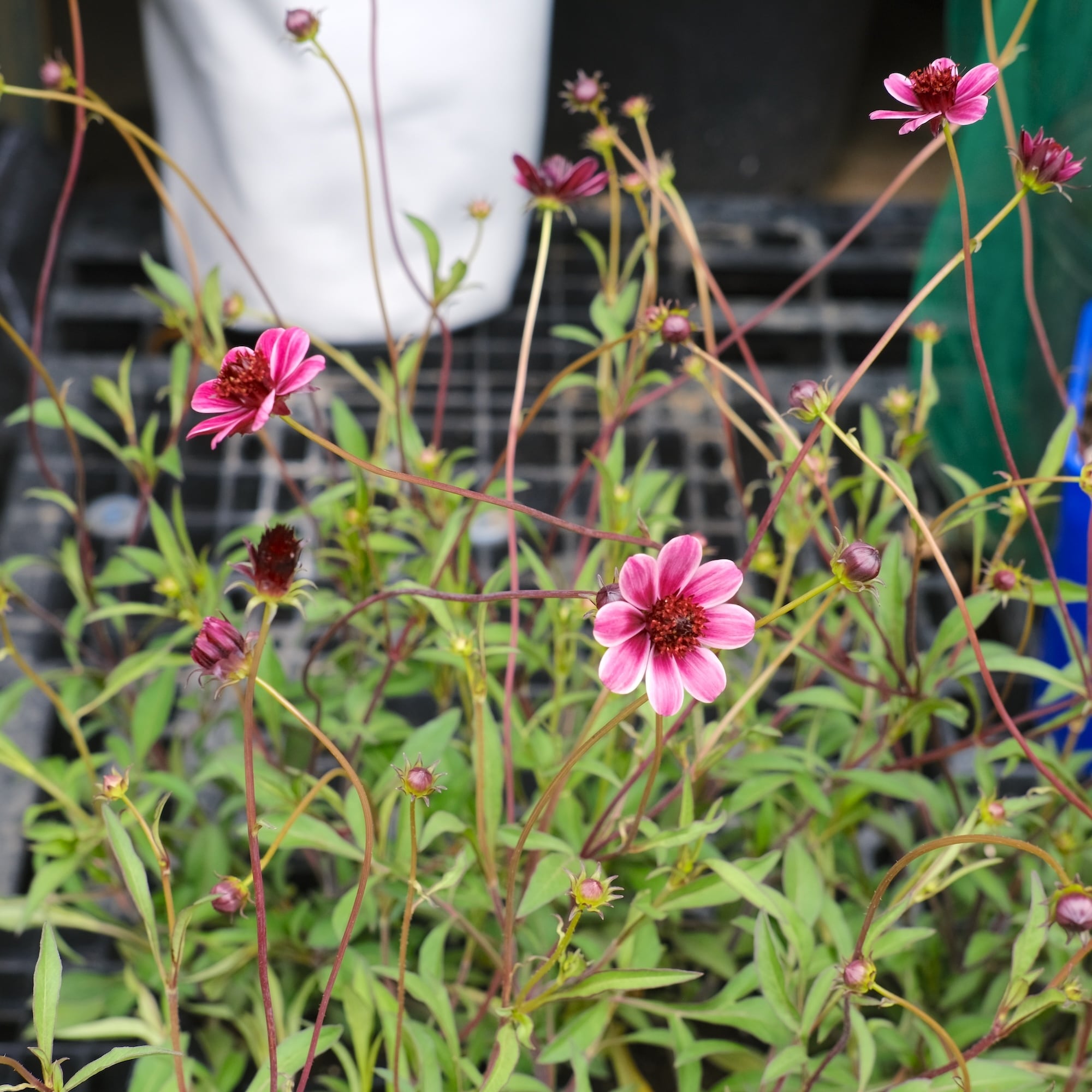 種から育てる実生苗は、わぁ〜かわいい!という想定外のお花をつける個体が出てきたりします。こちらもそのひとつなんです。チョコレートコスモスなのですが、このような可愛い色合いのお花をつけているんです。
