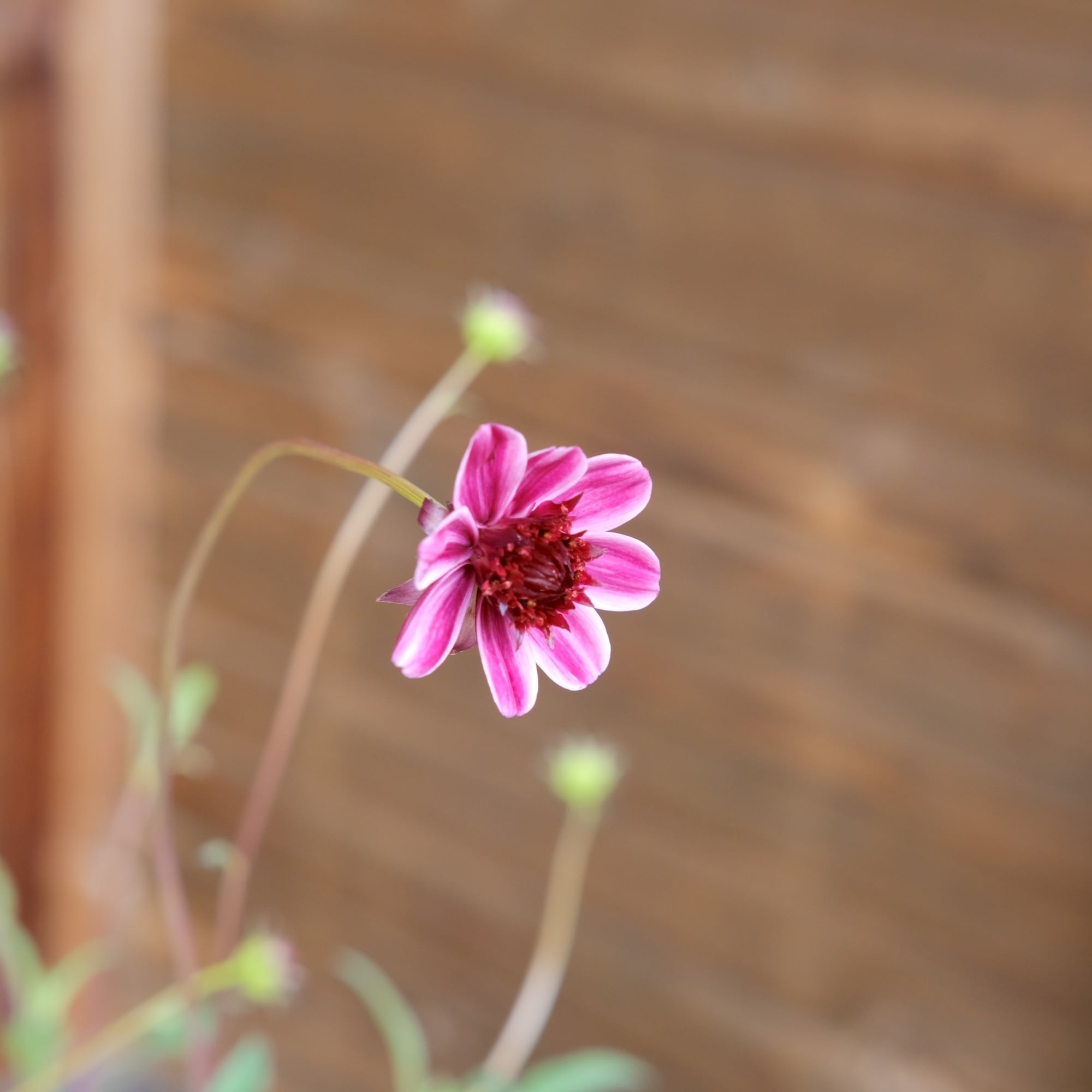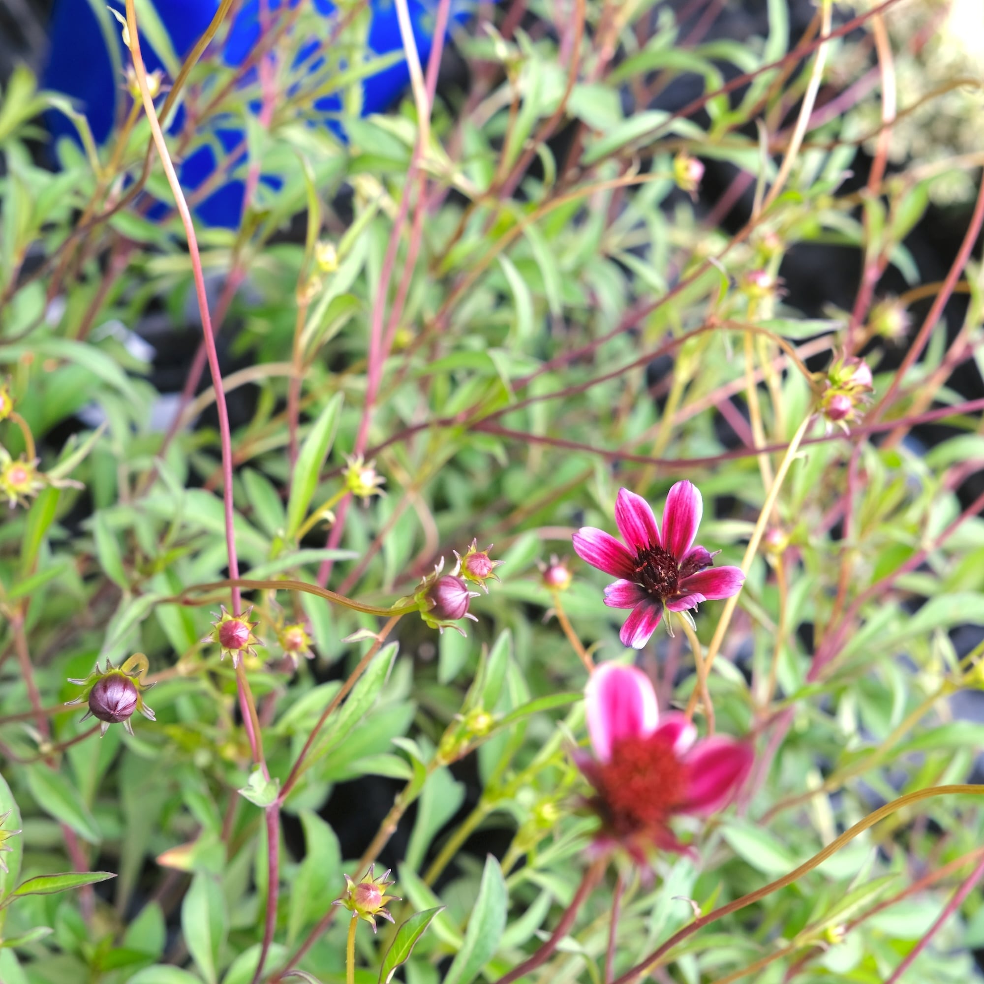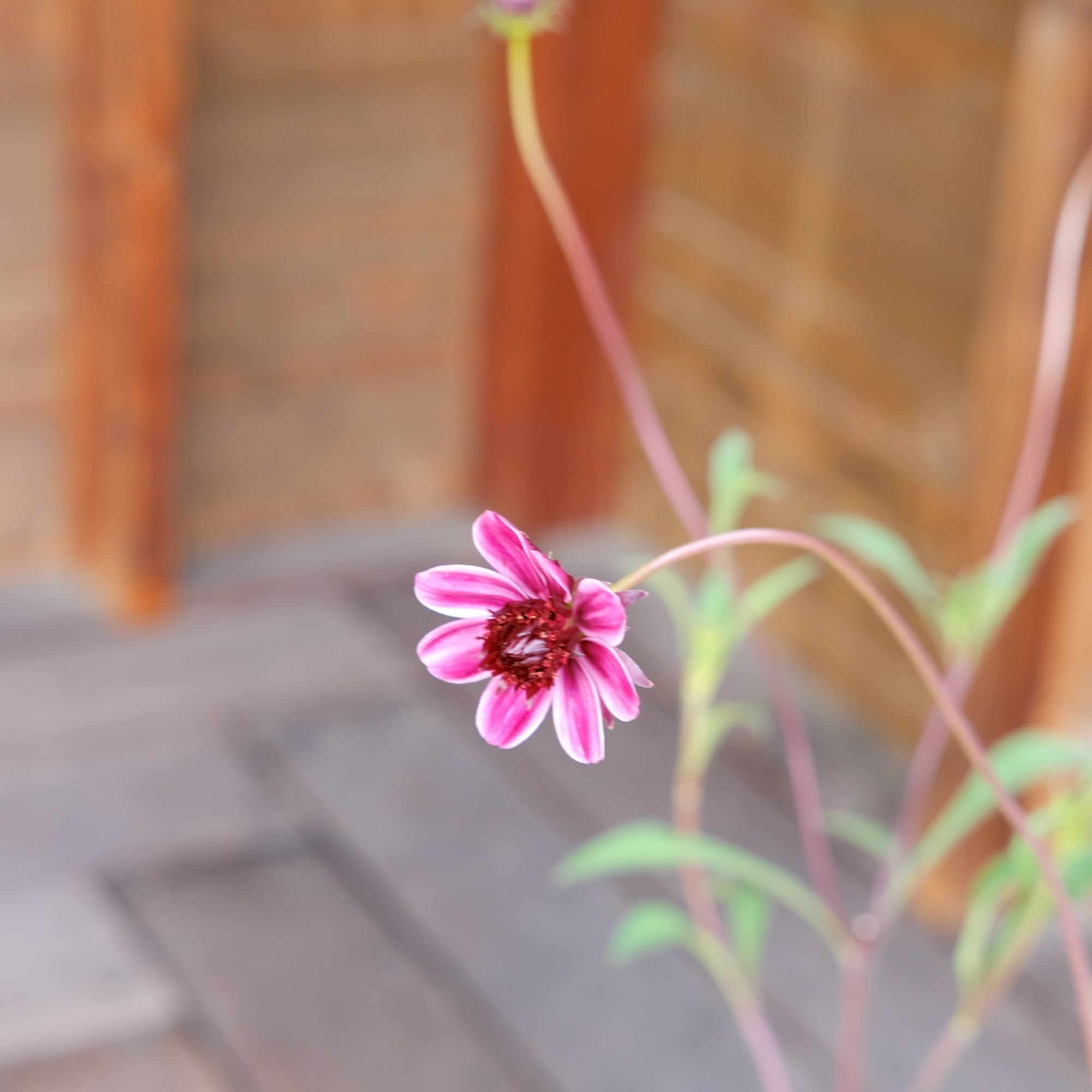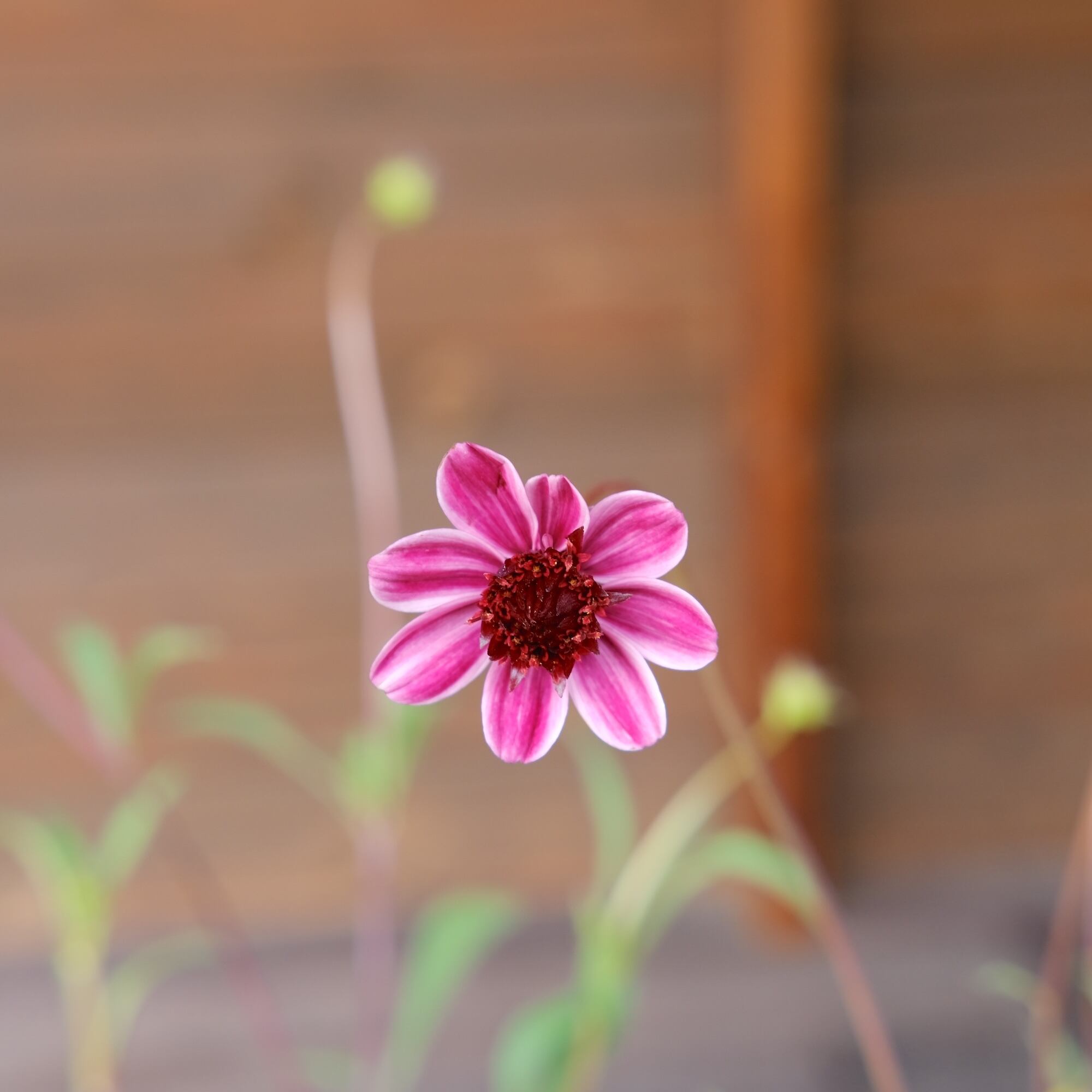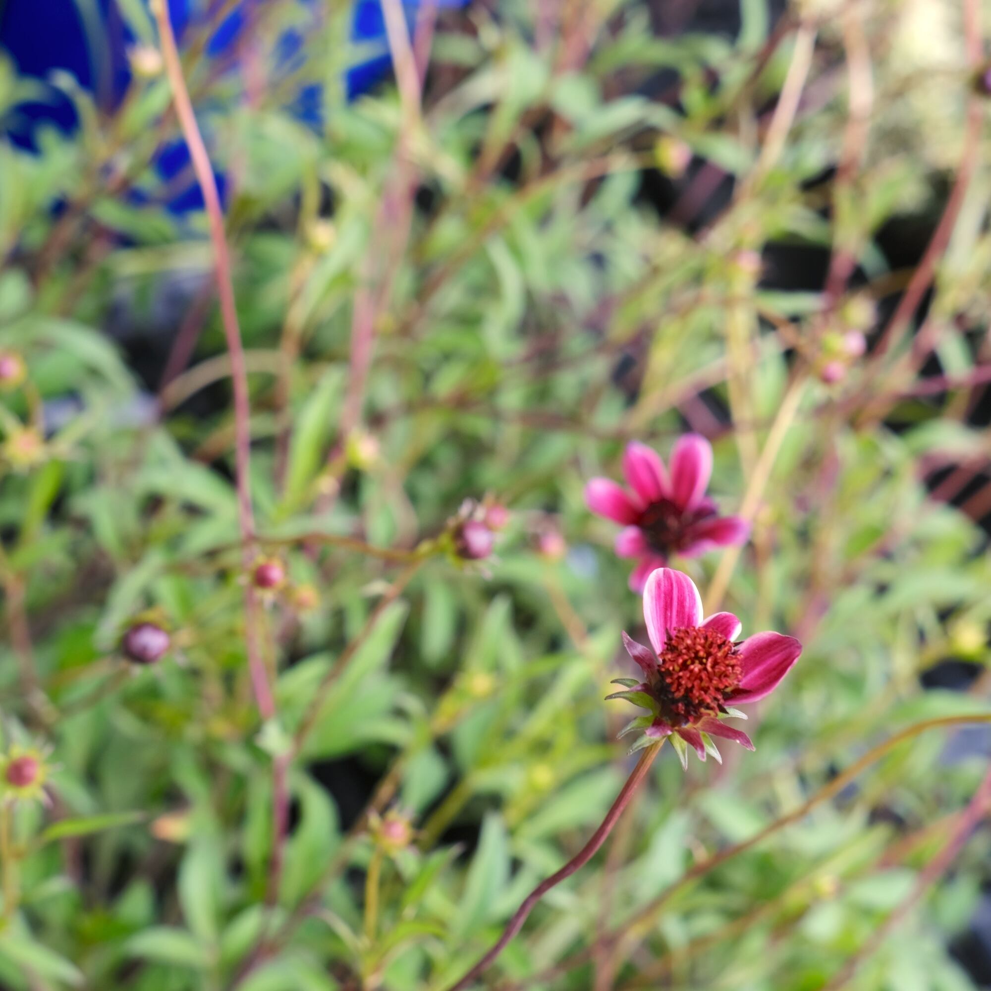 種から育てる実生苗は、わぁ〜かわいい!という想定外のお花をつける個体が出てきたりします。こちらもそのひとつなんです。チョコレートコスモスなのですが、このような可愛い色合いのお花をつけているんです。