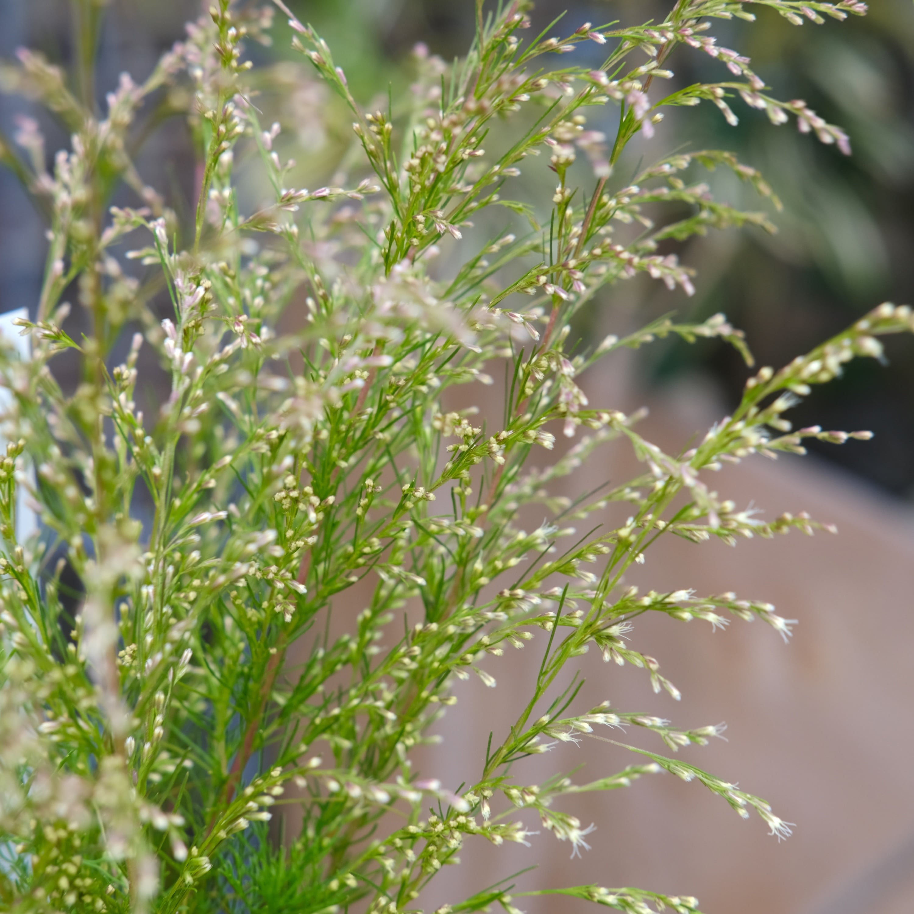 夏に向かう頃、羽のようにふわふわした葉を茂らせるのが魅力的なグリーンフェザーです。夏には茎が伸びて秋には花穂を見せてくれます。晩秋には花穂が白っぽくなり、その姿もまた美しいです。