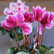 明るいパステル調の花色が特にきれいな品種で、一般的なガーデンシクラメンに比べ花が。大きいためとても見映えがします。
