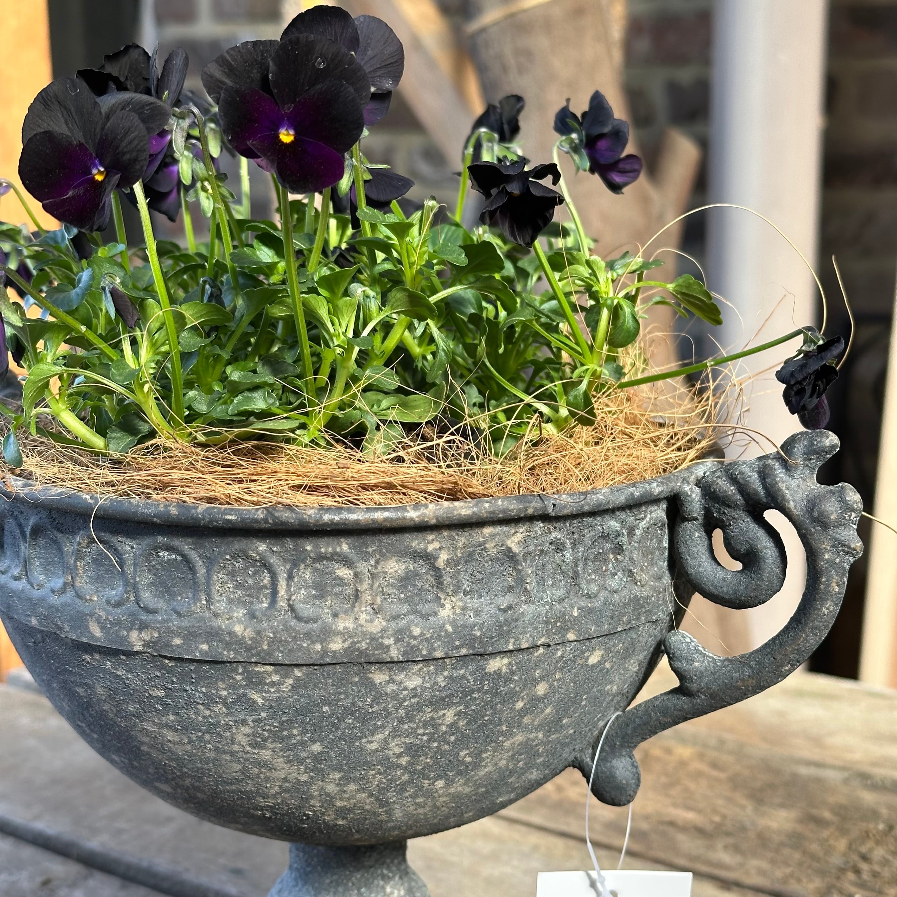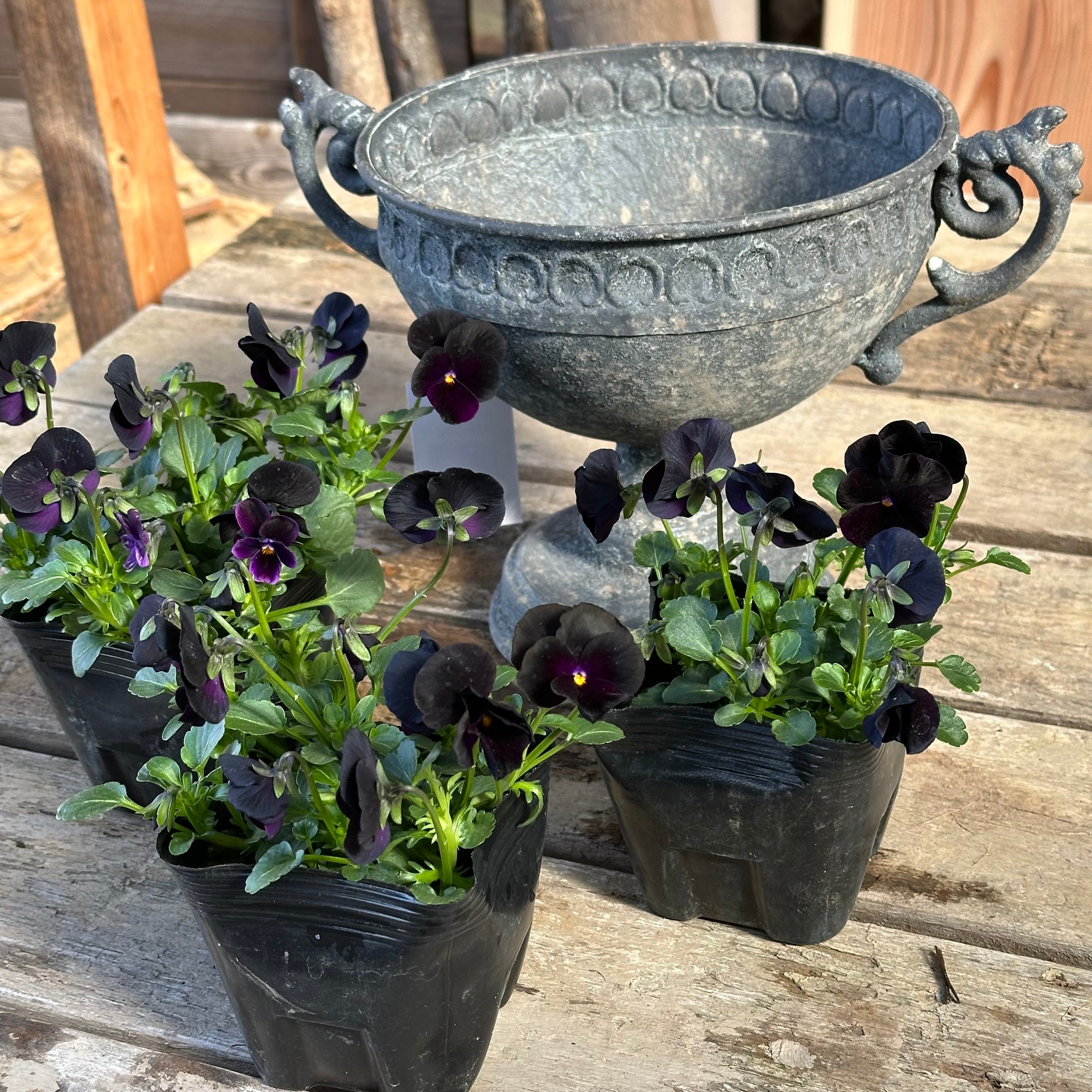 セット③|グレーの軽い鉢にビオラ《 ブラックデライト 》を植えよう