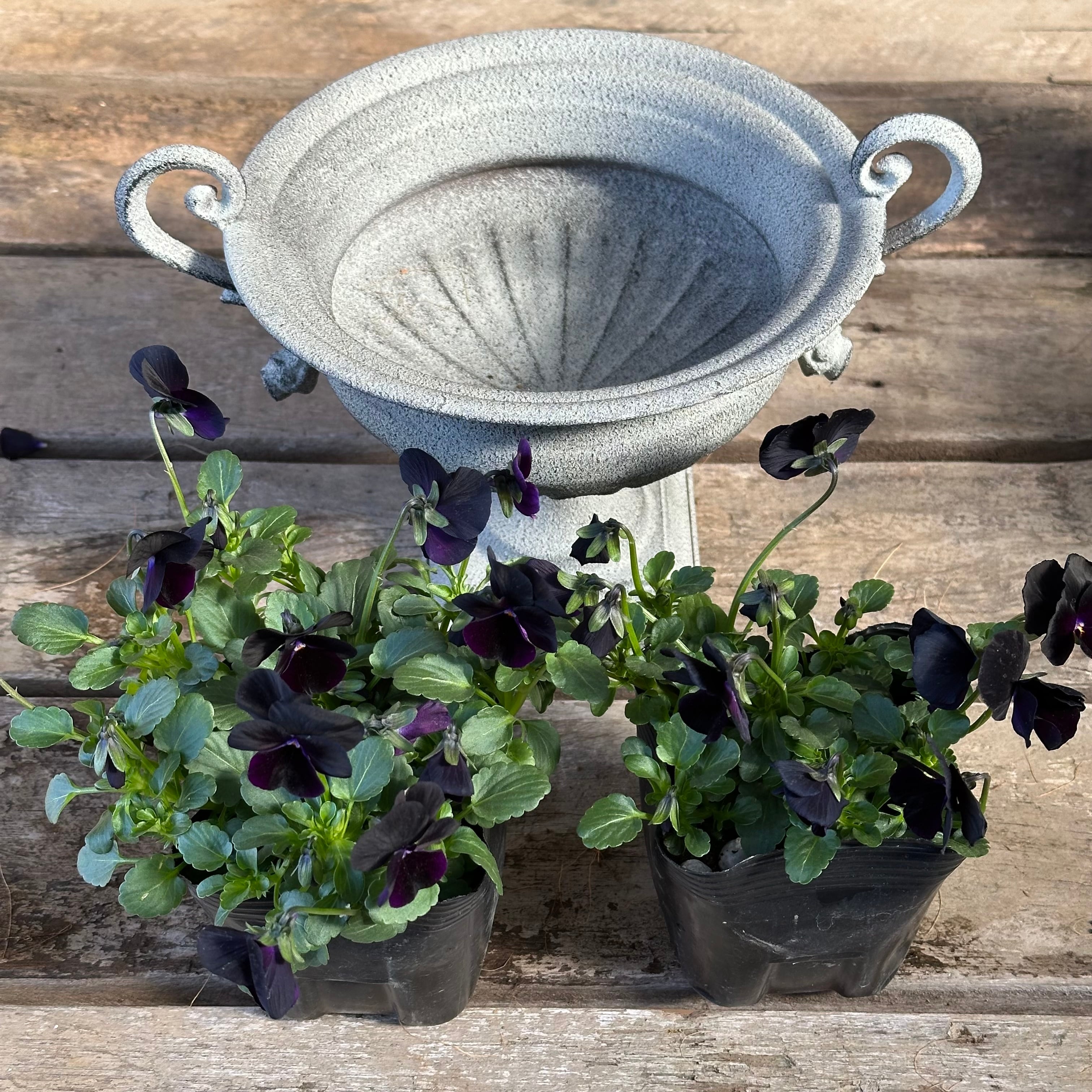 セット④|グレーの軽い鉢にビオラ《 ブラックデライト 》を植えよう