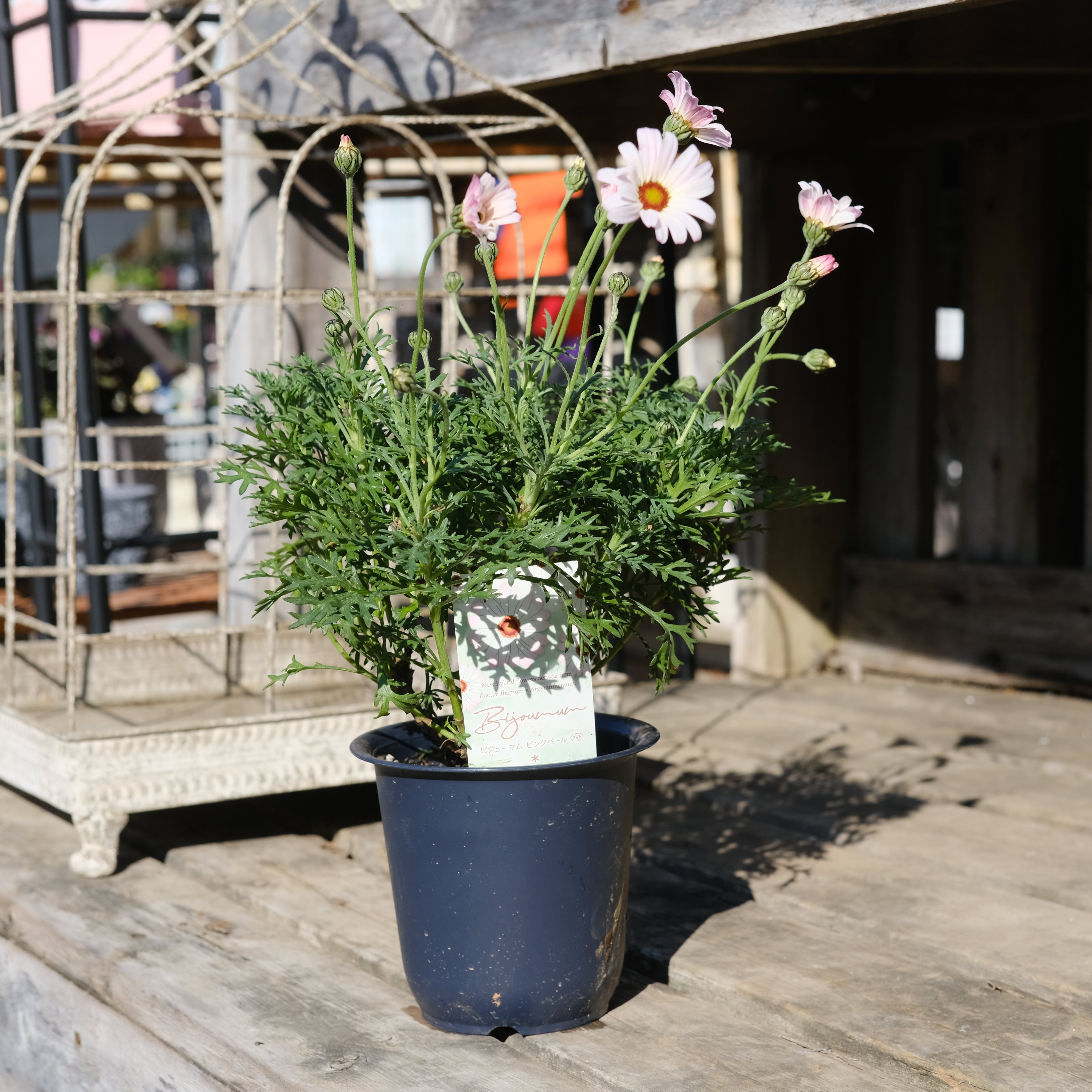 静岡県で生まれた「ビジューマム」は、花つき抜群のマーガレットと、寒さに強いローダンセマムを掛け合わせた、今までにない進化系の植物です。 両親の良いところをしっかり受け継いでいるので、たくさんの蕾が次々と咲き誇り、冬から初夏まで長くお庭を彩ってくれます。