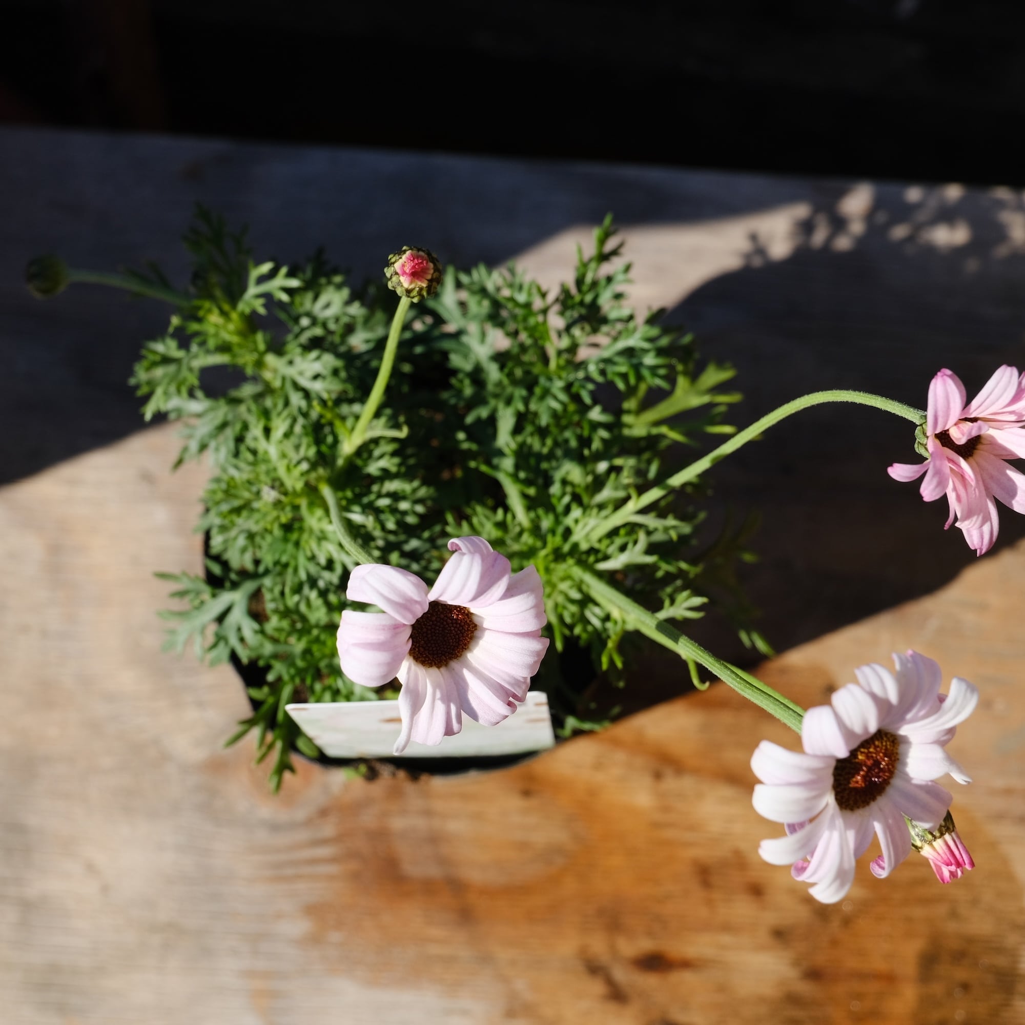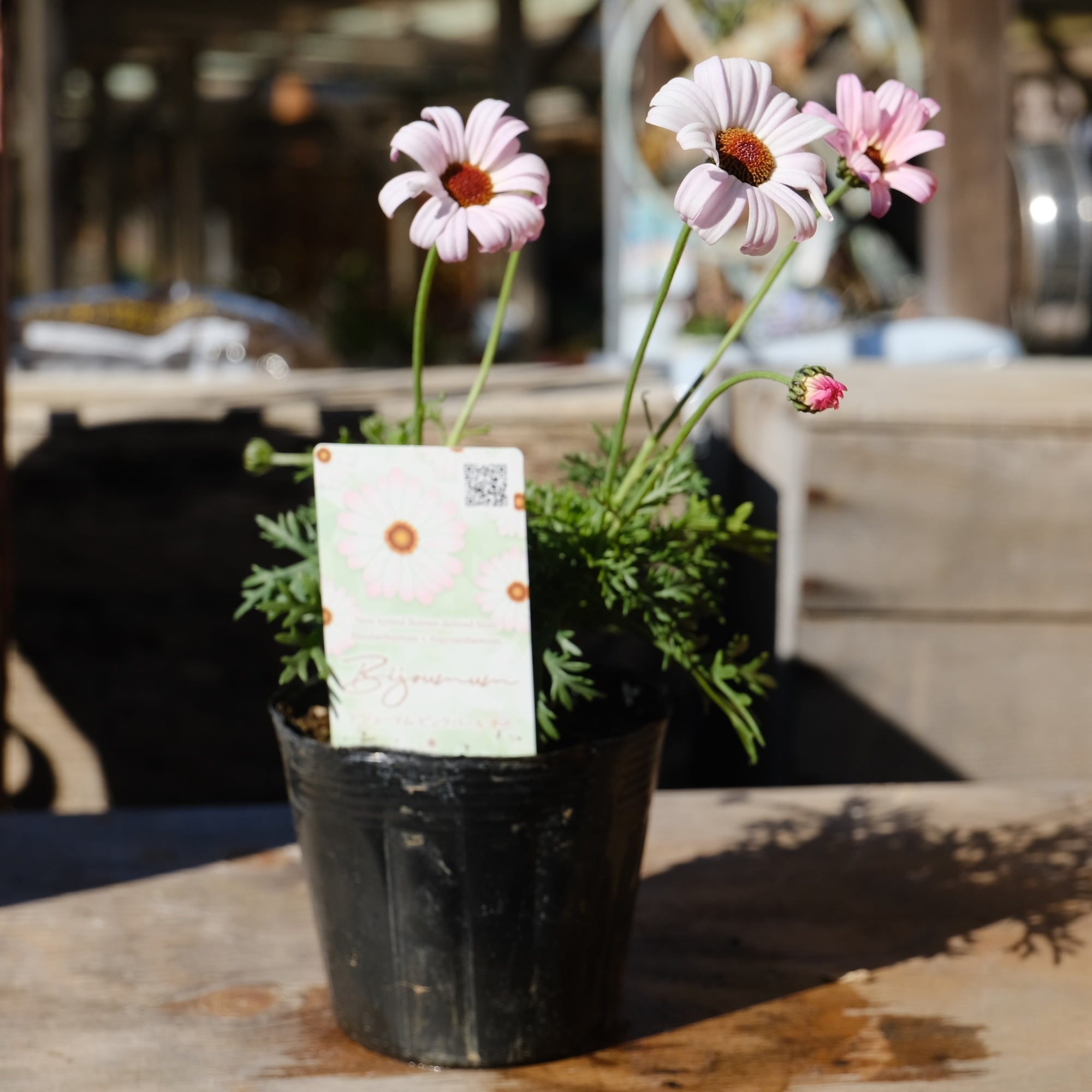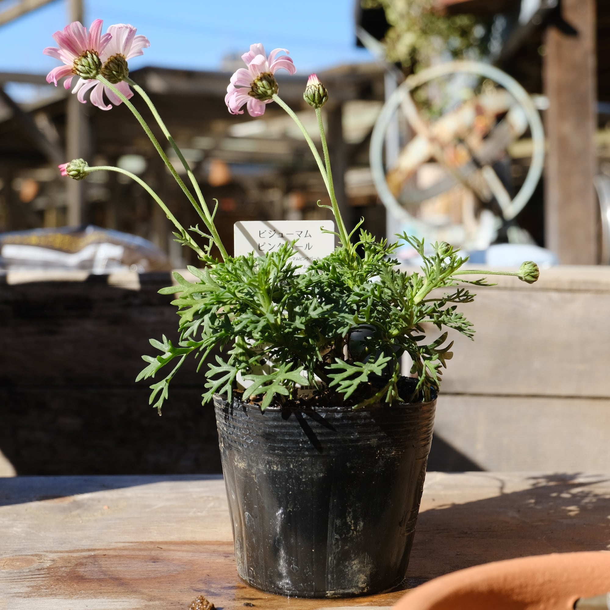 静岡県で生まれた「ビジューマム」は、花つき抜群のマーガレットと、寒さに強いローダンセマムを掛け合わせた、今までにない進化系の植物です。 両親の良いところをしっかり受け継いでいるので、たくさんの蕾が次々と咲き誇り、冬から初夏まで長くお庭を彩ってくれます。