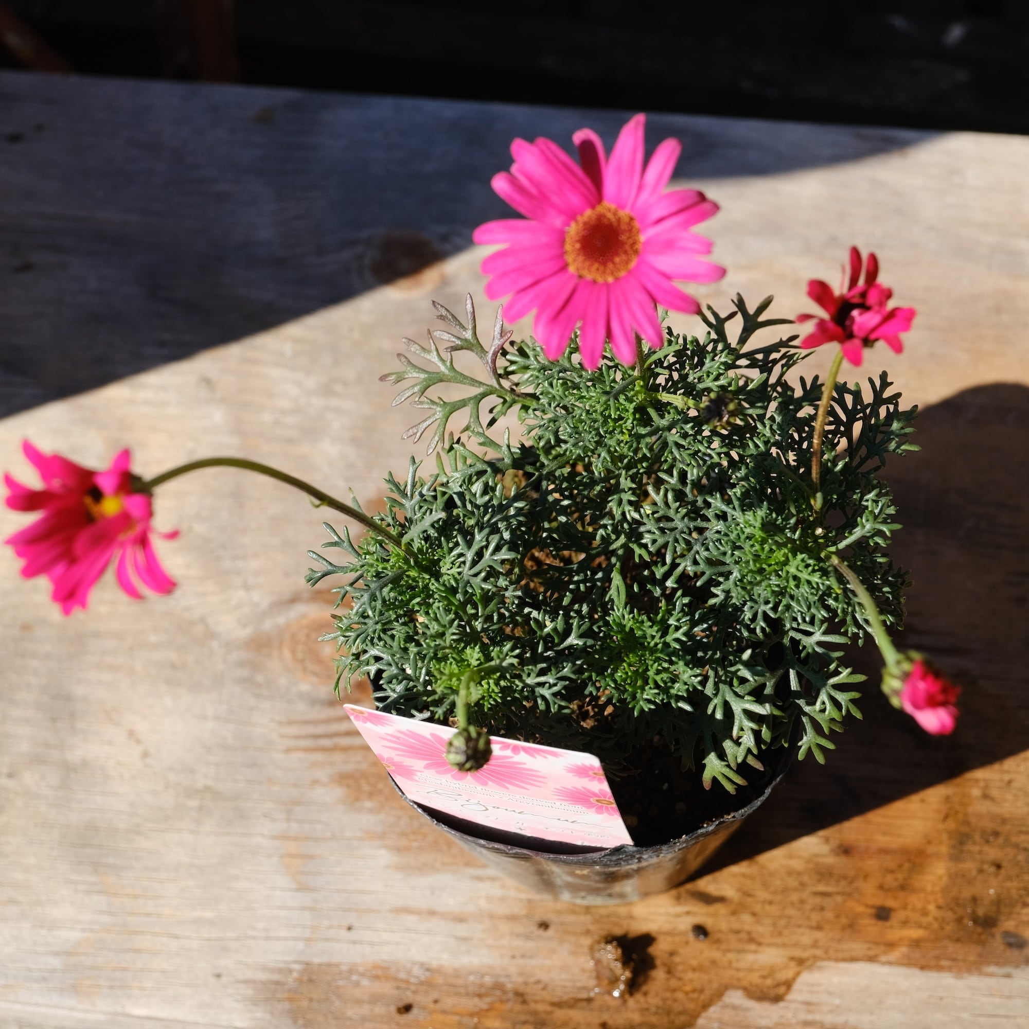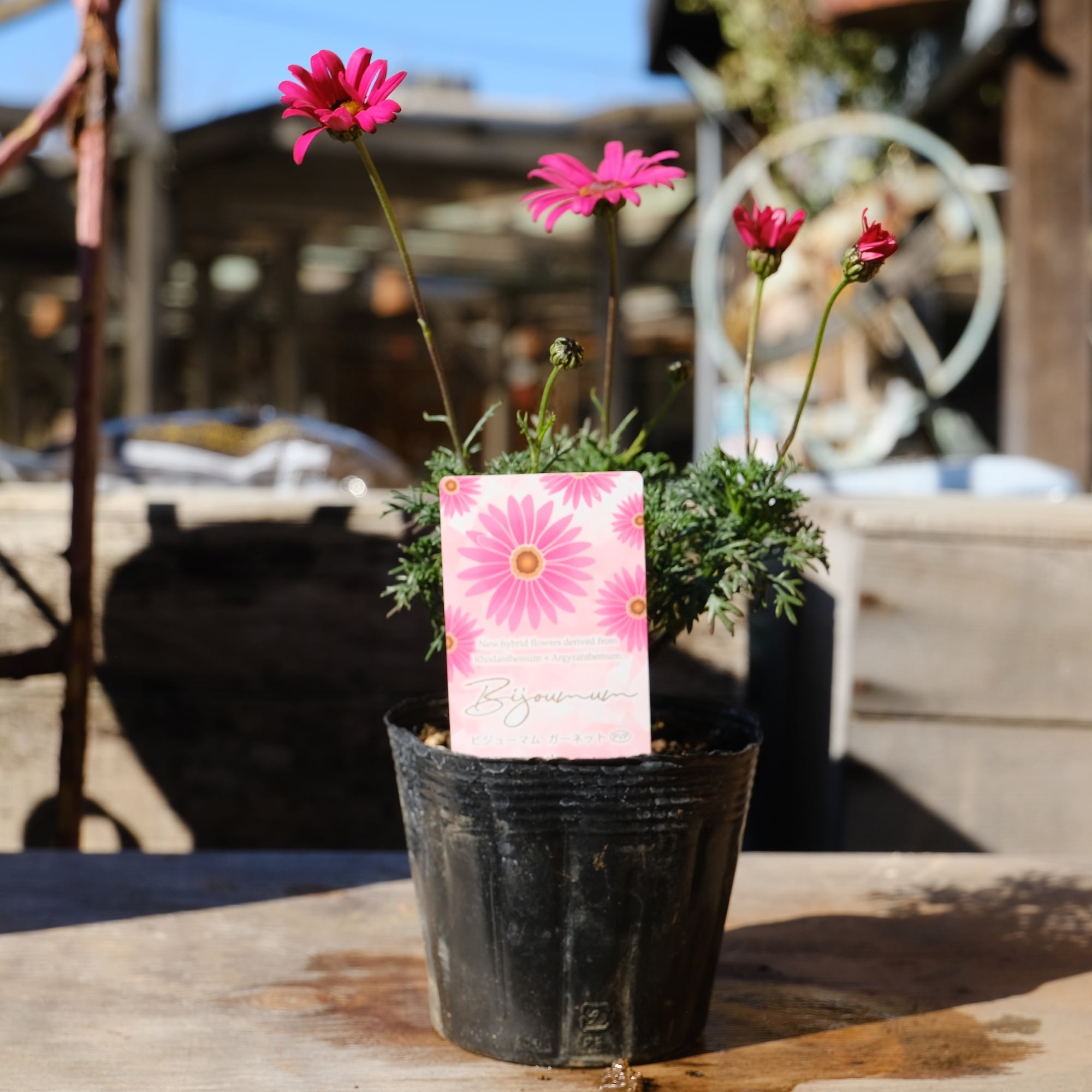 静岡県で生まれた「ビジューマム」は、花つき抜群のマーガレットと、寒さに強いローダンセマムを掛け合わせた、今までにない進化系の植物です。 両親の良いところをしっかり受け継いでいるので、たくさんの蕾が次々と咲き誇り、冬から初夏まで長くお庭を彩ってくれます。