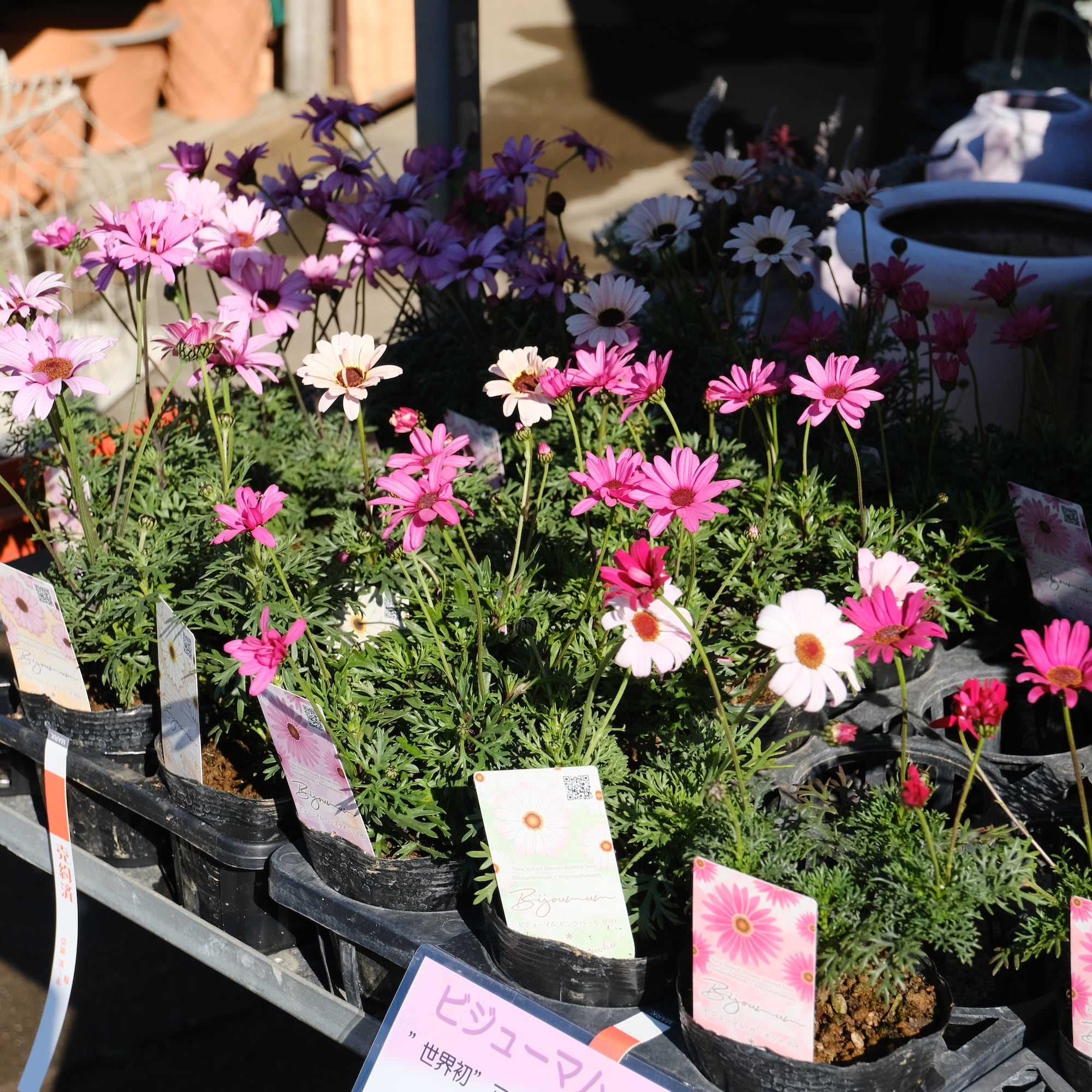 静岡県で生まれた「ビジューマム」は、花つき抜群のマーガレットと、寒さに強いローダンセマムを掛け合わせた、今までにない進化系の植物です。 両親の良いところをしっかり受け継いでいるので、たくさんの蕾が次々と咲き誇り、冬から初夏まで長くお庭を彩ってくれます。