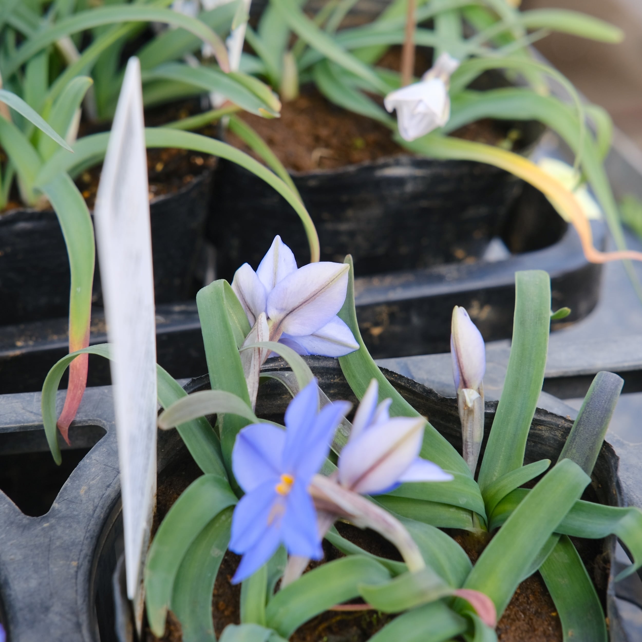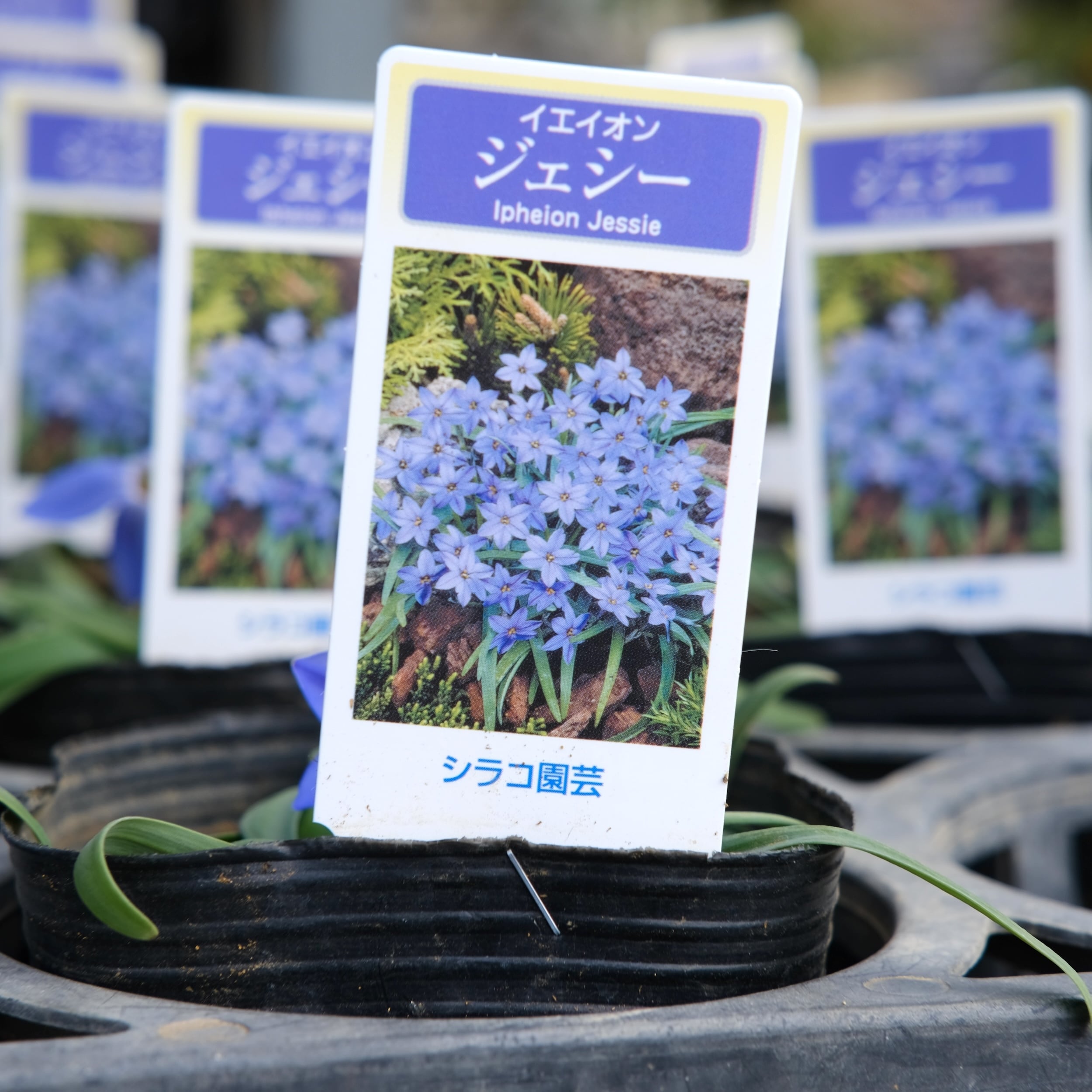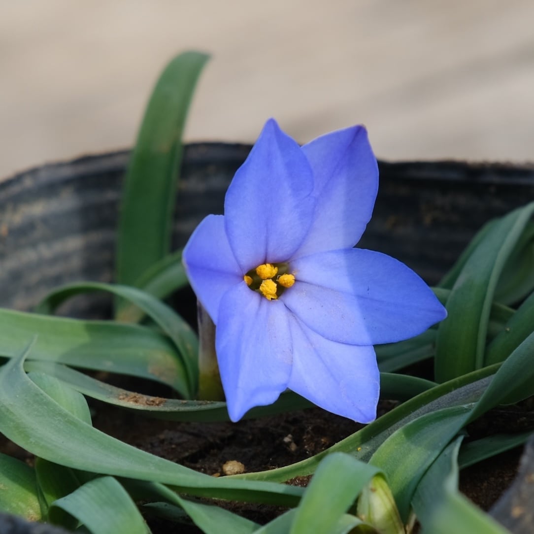 通称ハナニラの青花品種です。くっきりとした印象的な花色で裏側は白っぽさがあってとても美しいお花を咲かせる品種です。匍匐性があり、数年かけて大株に広がっていきます。日当たりの良い傾斜地や、浅めのプランターなどでの栽培がお勧めです。数年植え替えをしないほうが良く生育する球根です。