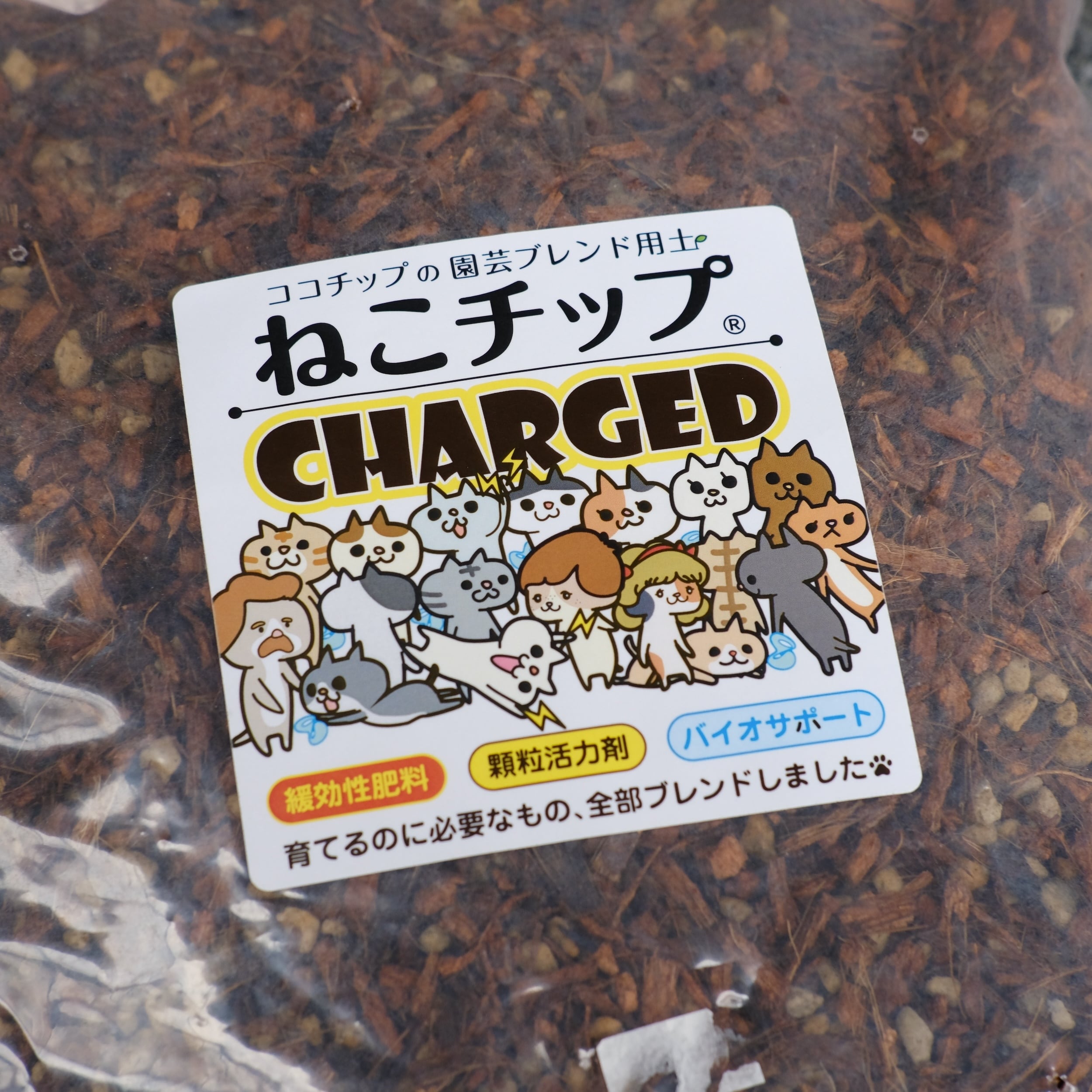 「ねこチップ CHARGED(チャージド)」は、観葉植物・多肉植物用の高機能培養土である「ねこチップ」の進化版で、成長を促進する要素を追加した試作版の特殊配合土です。なのでまだ量産されていないので、まだほぼ流通していないんです。
