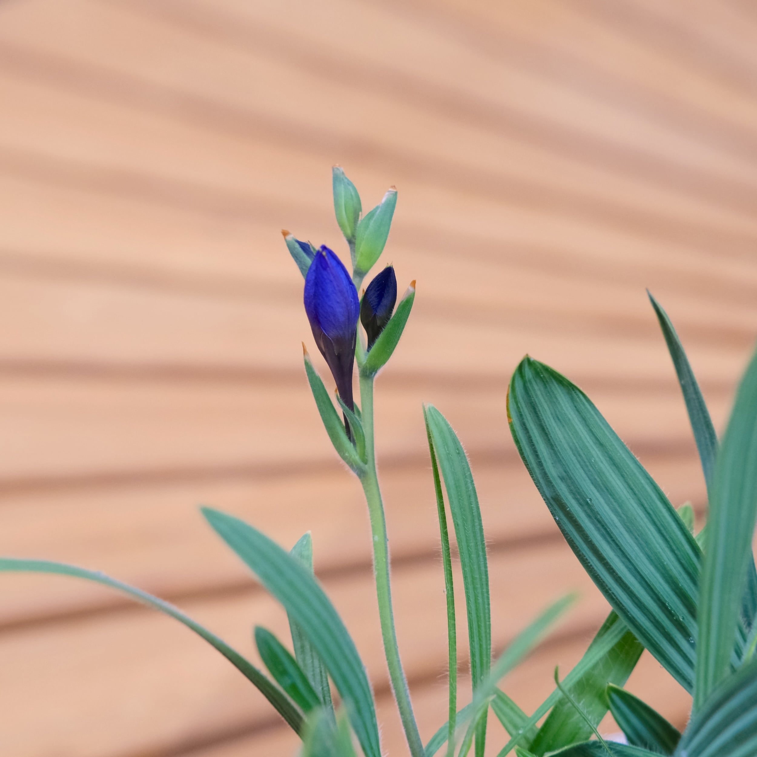 アヤメ科らしい縦筋が入ったシャープな葉も美しく、花がない時期もスタイリッシュな佇まいで、寄せ植えのアクセントとしても活躍します。