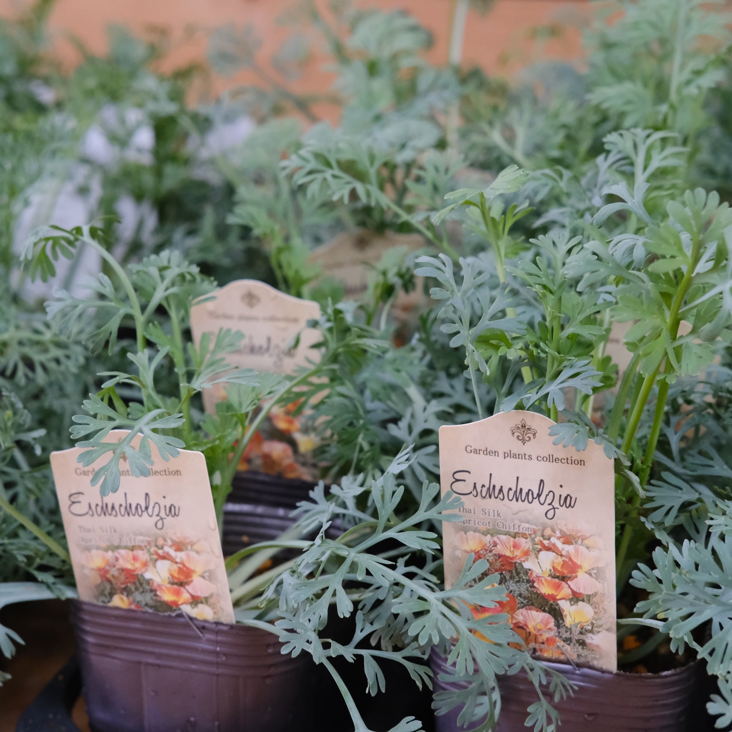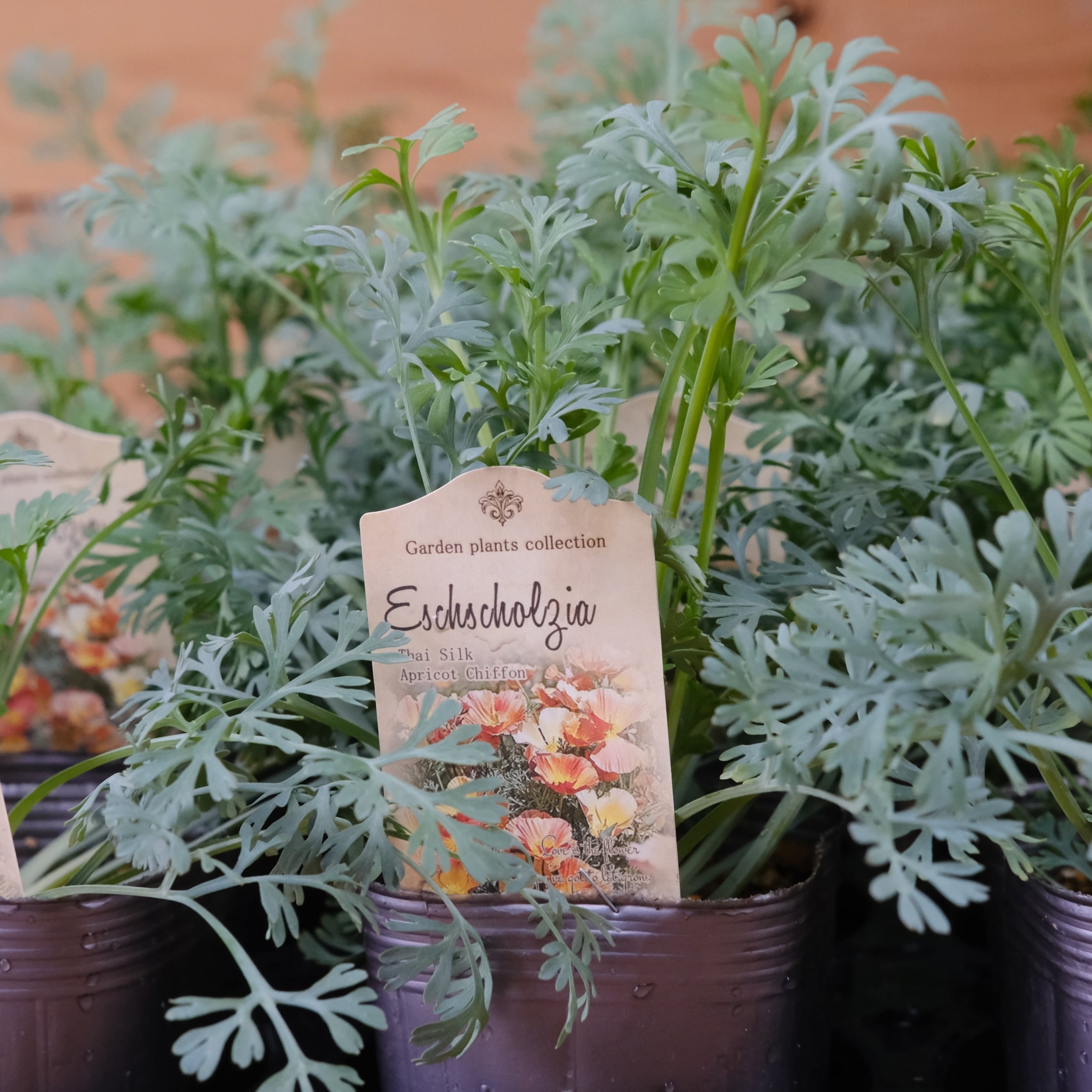 アプリコットオレンジ〜赤っぽいオレンジ〜黄色と色幅のある一重咲きで、シルバーがかった細かな切れ込みの葉とのコントラストも美しく、花がない時期もカラーリーフとして楽しめます。 日差しを浴びてキラキラと輝きながら花開く姿は、思わず見惚れてしまうほどの美しさです。