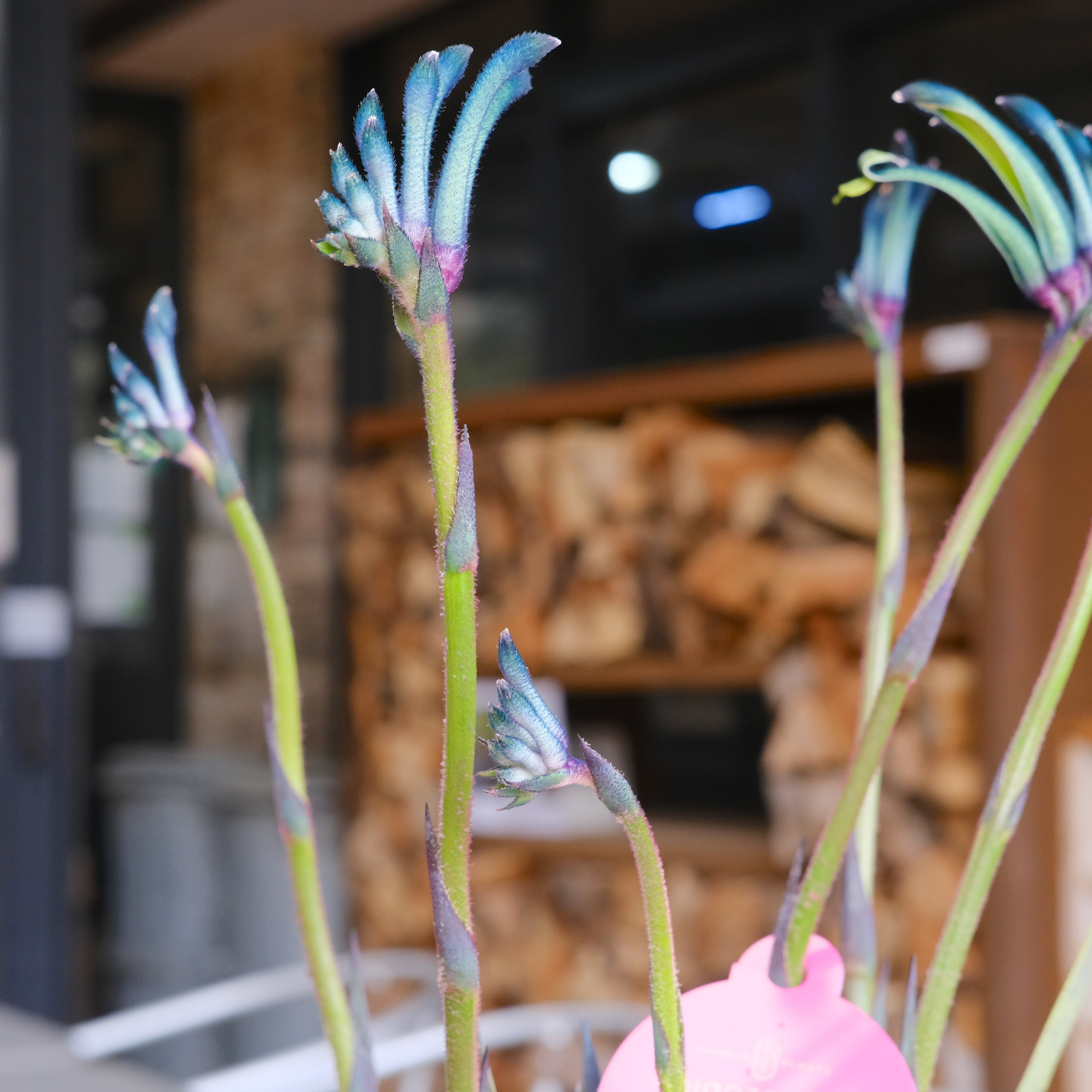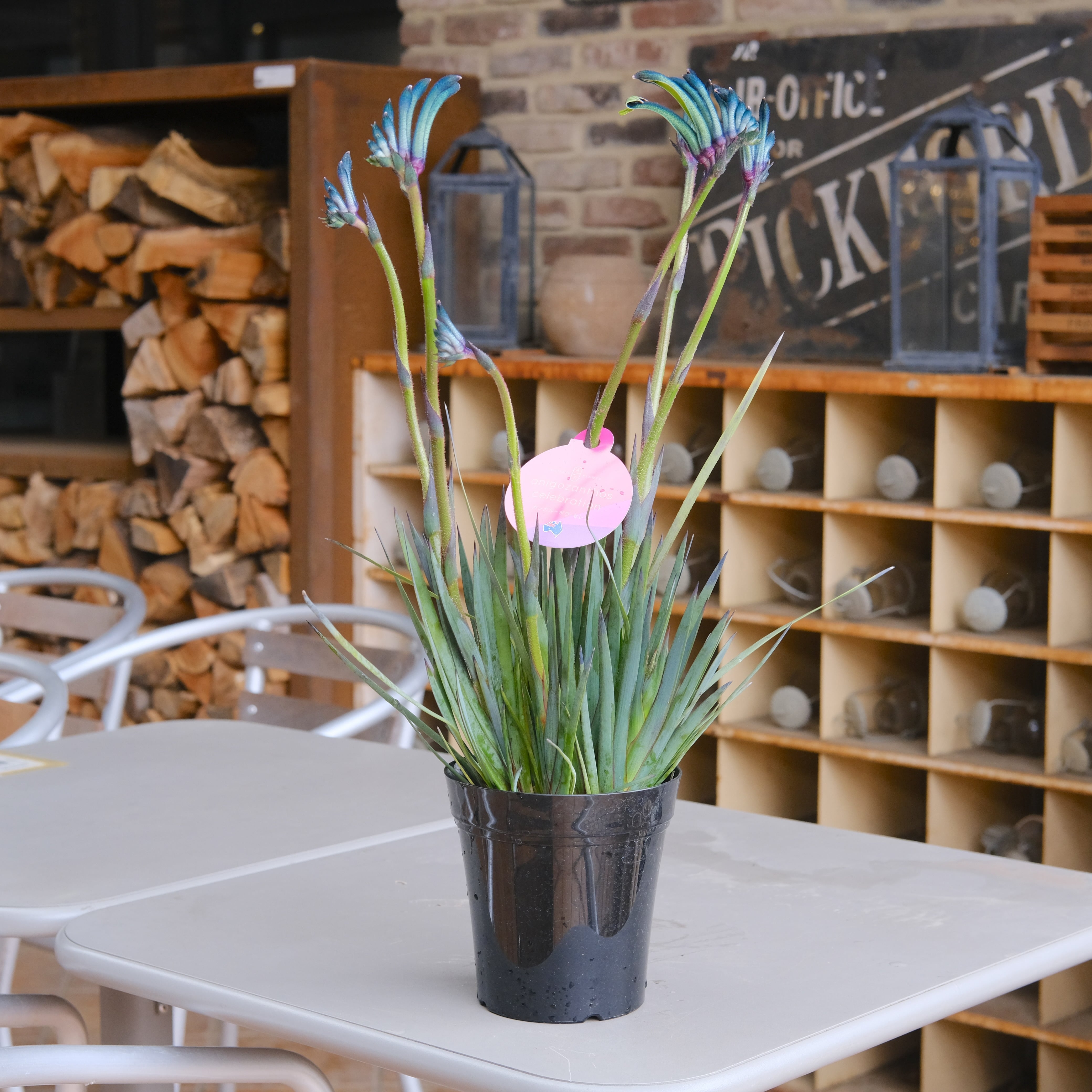 その名の通り「カンガルーの足」のようなユニークな形の花を咲かせる、オーストラリア原産の個性派植物!「セレブ」シリーズは、これまでのカンガルーポーよりも花色が鮮やかで、株立ちが良く、次々と花を立ち上げてくれるのが特徴です。
