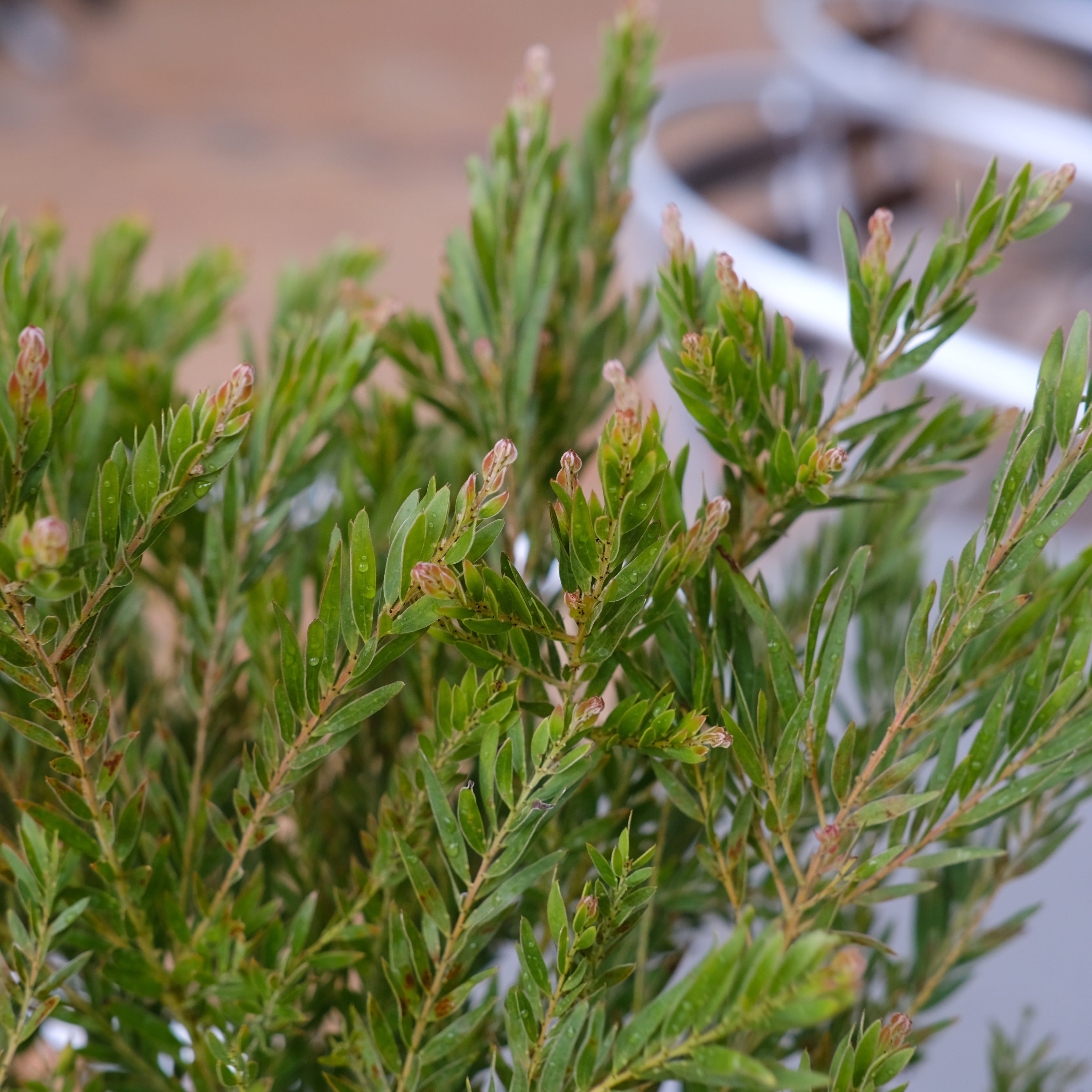 シルバーグリーンの細長い葉も美しく、花が咲いていない時期もカラーリーフとして一年中楽しめます。大きくなりすぎないので、鉢植えで育てたい方に最適な品種です。