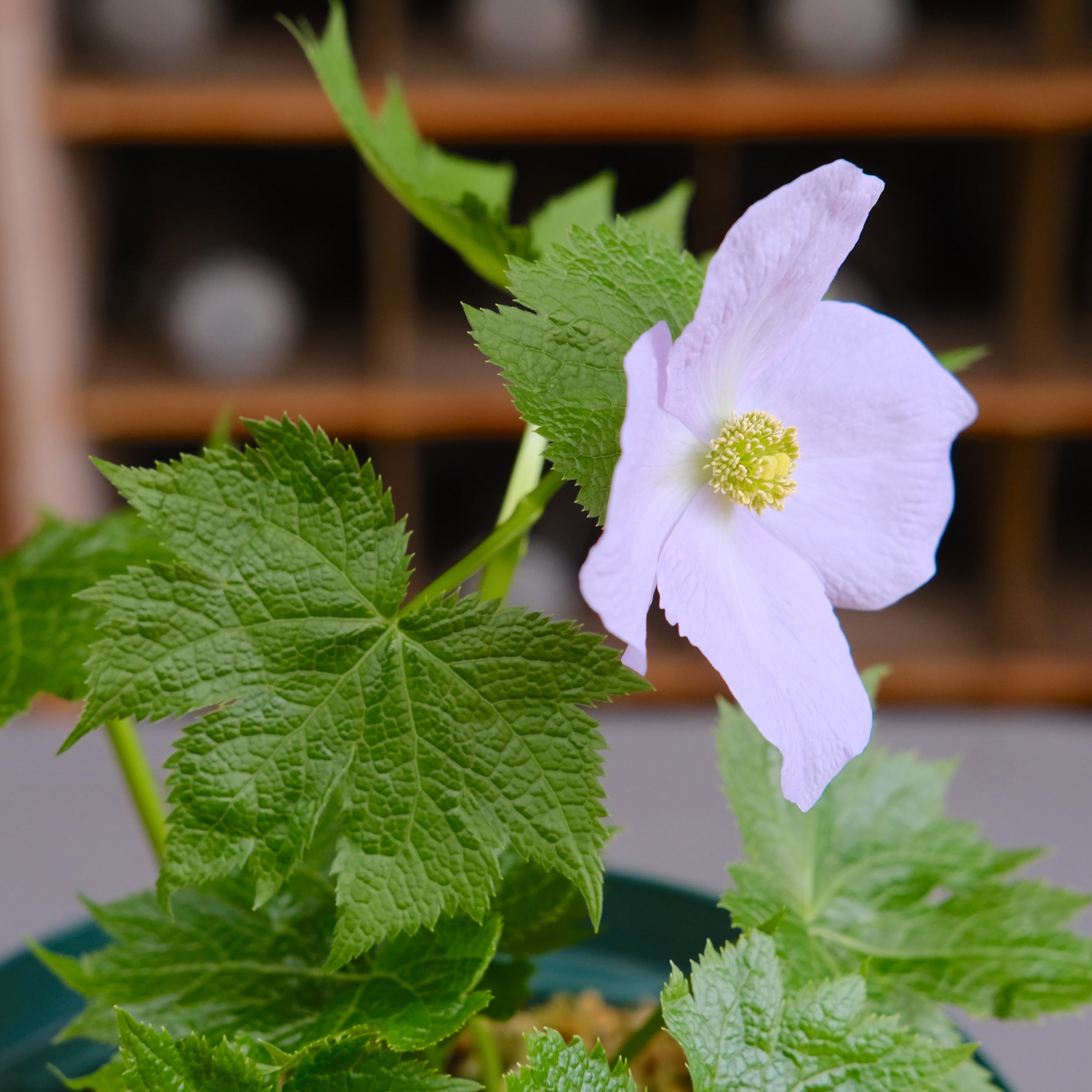 花だけでなく、手のひら状に広がる大きな葉の造形美も、デザイン性が高く鑑賞価値があります。
