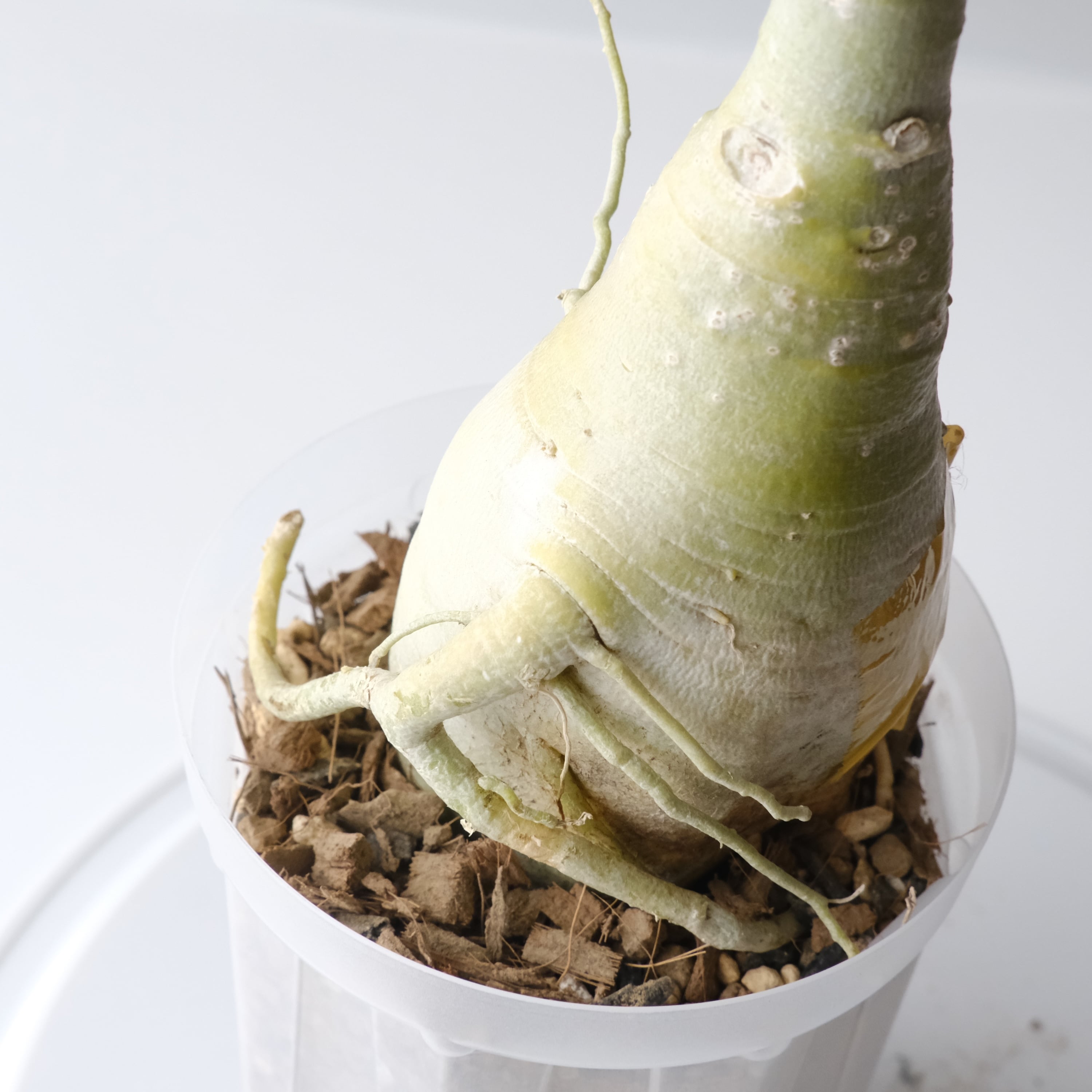 ▶︎「砂漠のバラ」と呼ばれ、過酷な乾燥地帯を生き抜く力強さと美しさを兼ね備えた多肉植物です。ぷっくり膨らむ幹に水を蓄える性質があるため、水のやりすぎは根腐れの原因になります。あえて手間をかけすぎないことが、元気に育てる秘訣です!