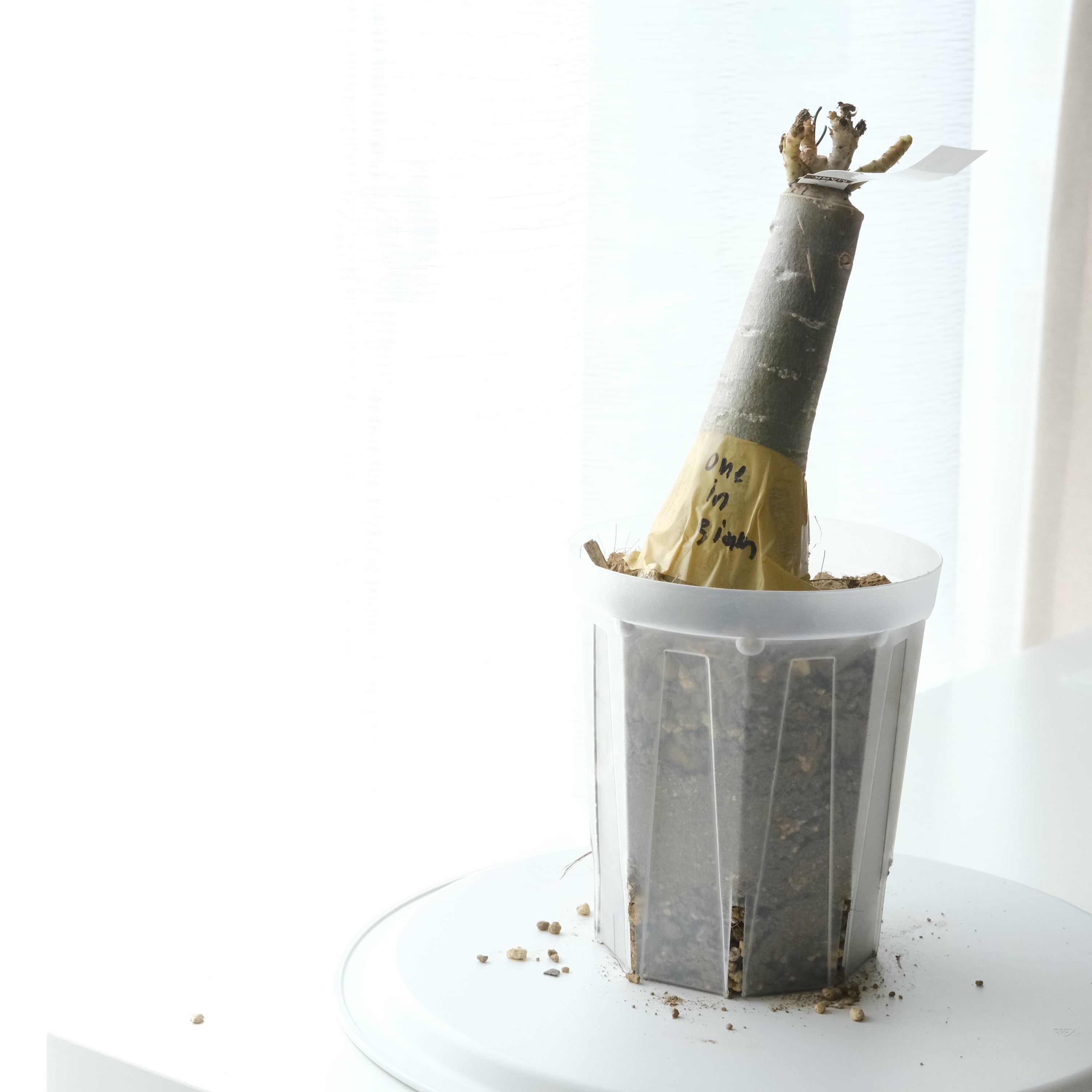 ・こちらの苗は、まだ土に挿したばかりで固定できていません(寒い休眠期にタイから日本にやってきました!日本の4月〜暖かい季節が適期のため植え付けたばかりの状態です)ので、容易に抜けたり倒れますのであらかじめご承知おきくださいますよう、お願い申し上げます。