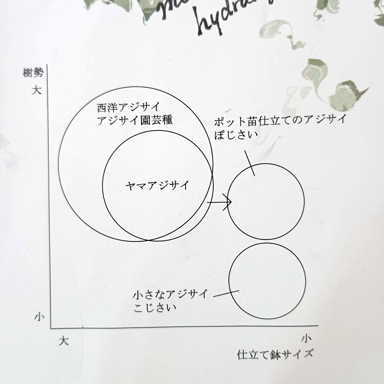 一方、今回ご紹介している「こじさい」は、交配を重ねて小型化したもので、矮化剤を使用していない交配品種(園芸アジサイ)になります。
