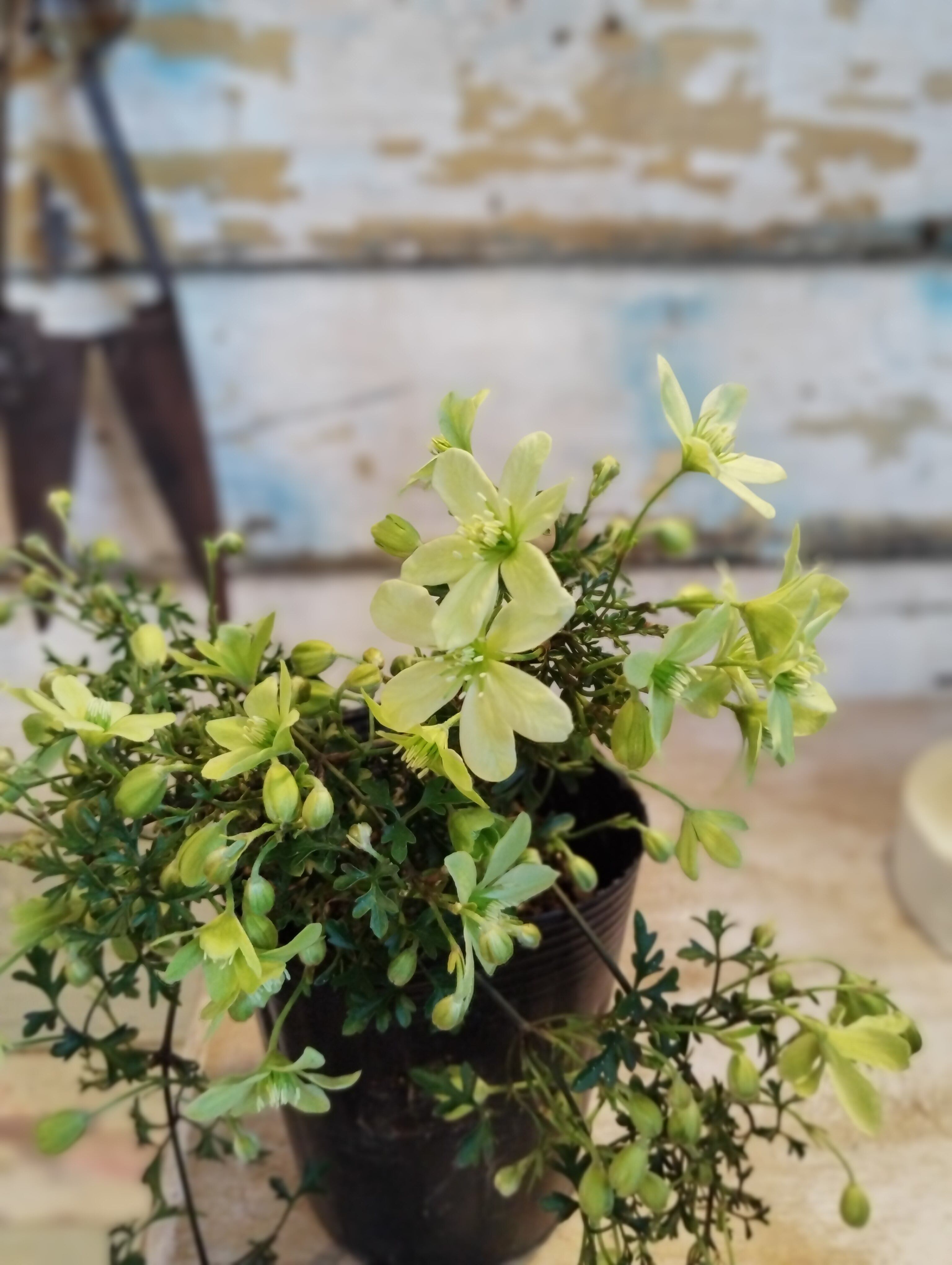 常緑性多年草つる植物のクレマチス・ぺトレイは、開花期には美しい色合いの花があふれるように咲きます。春の光に照らされたぺトレイの花色は、唯一無二の美しさがあります。過湿を嫌うため、庭植えよりも鉢植えの方が管理しやすいです。