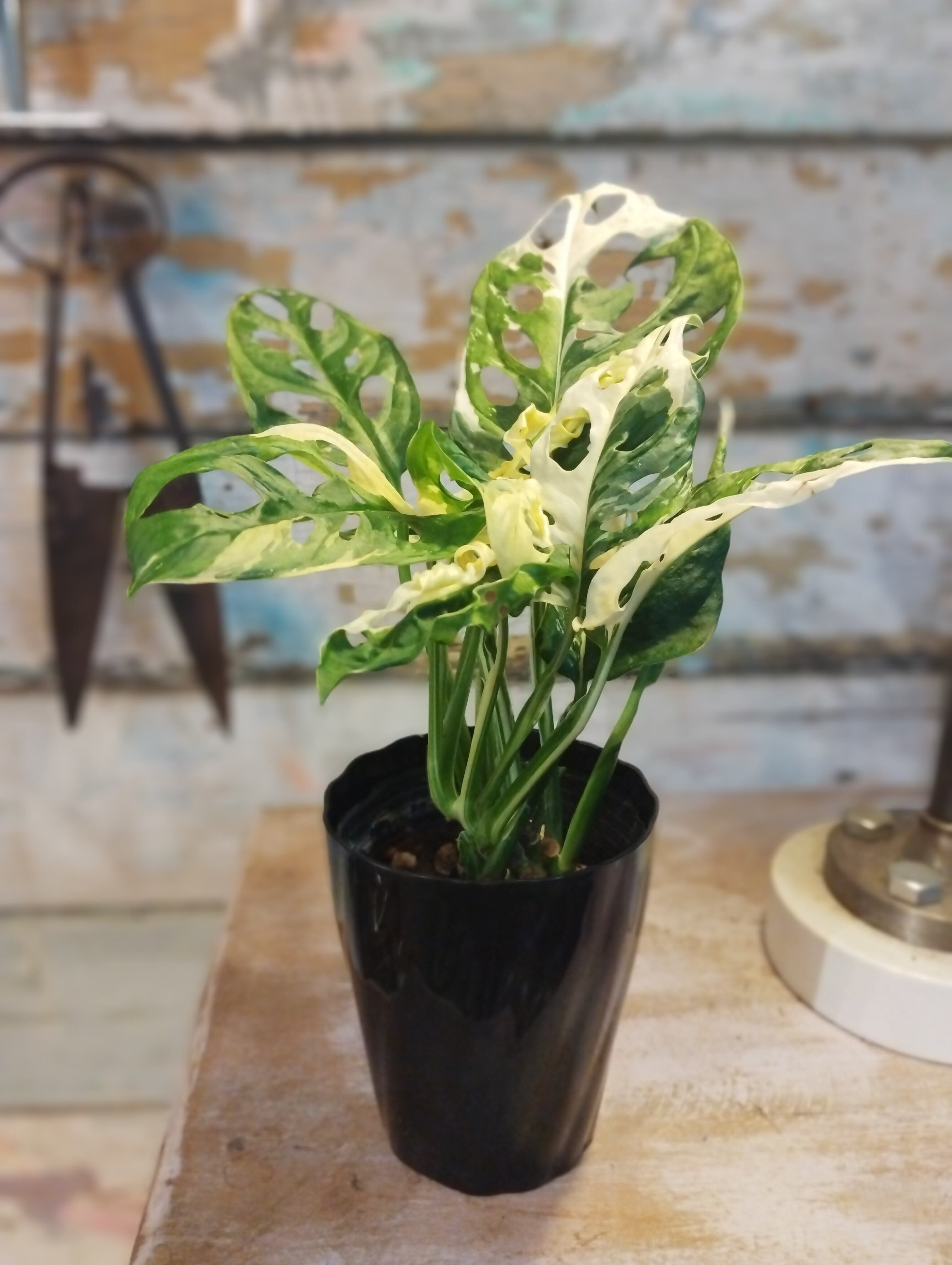 マドカズラは、葉に窓のように穴が開いています。耐陰性が強く、明るい室内であれば育ちます。半つる性またはつる性です。