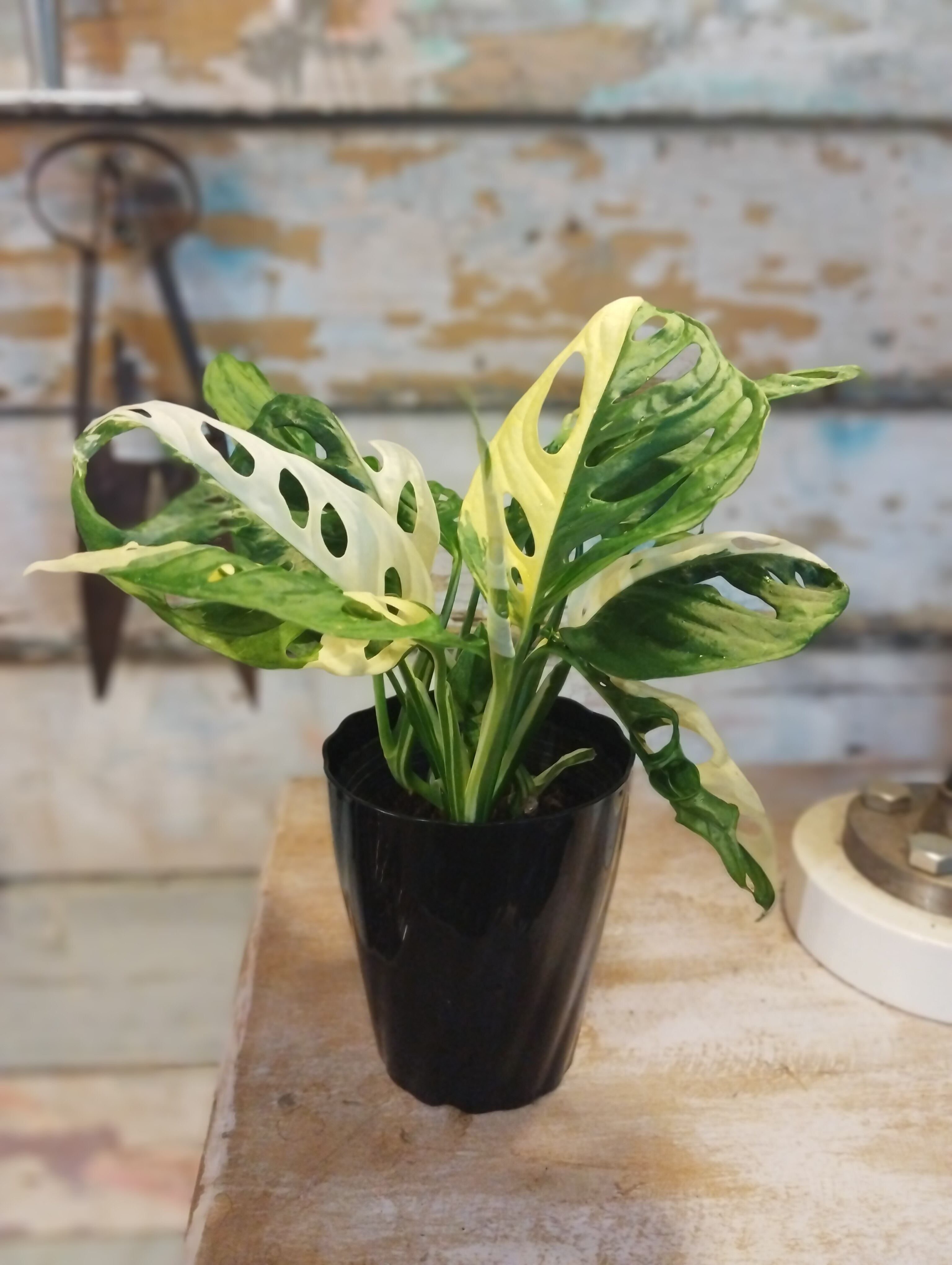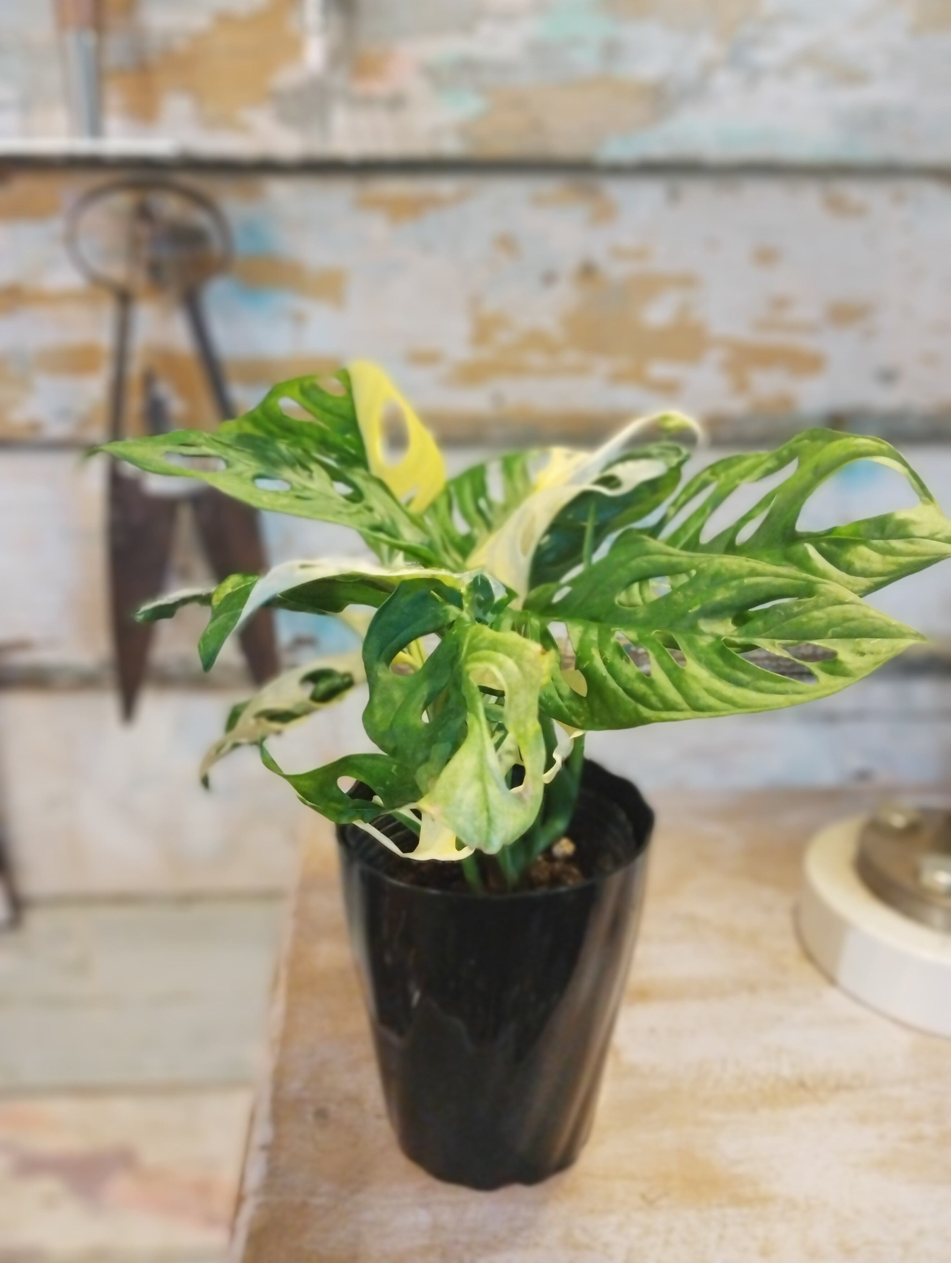 マドカズラは、葉に窓のように穴が開いています。耐陰性が強く、明るい室内であれば育ちます。半つる性またはつる性です。