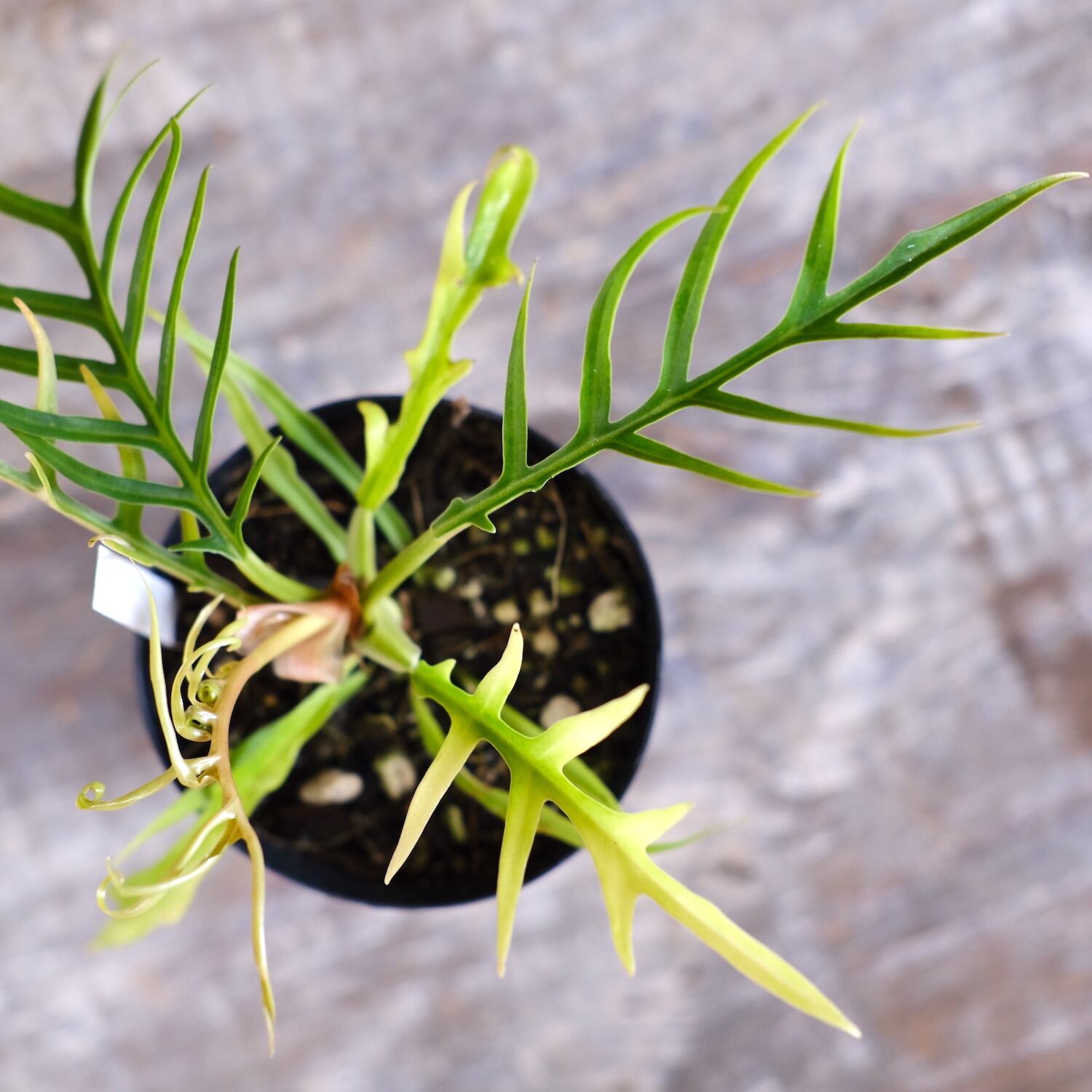 細く珍しい切れ込みが入る細葉のフィロデンドロン トータムです。フィロデンドロンは耐陰性も高くおすすめです。