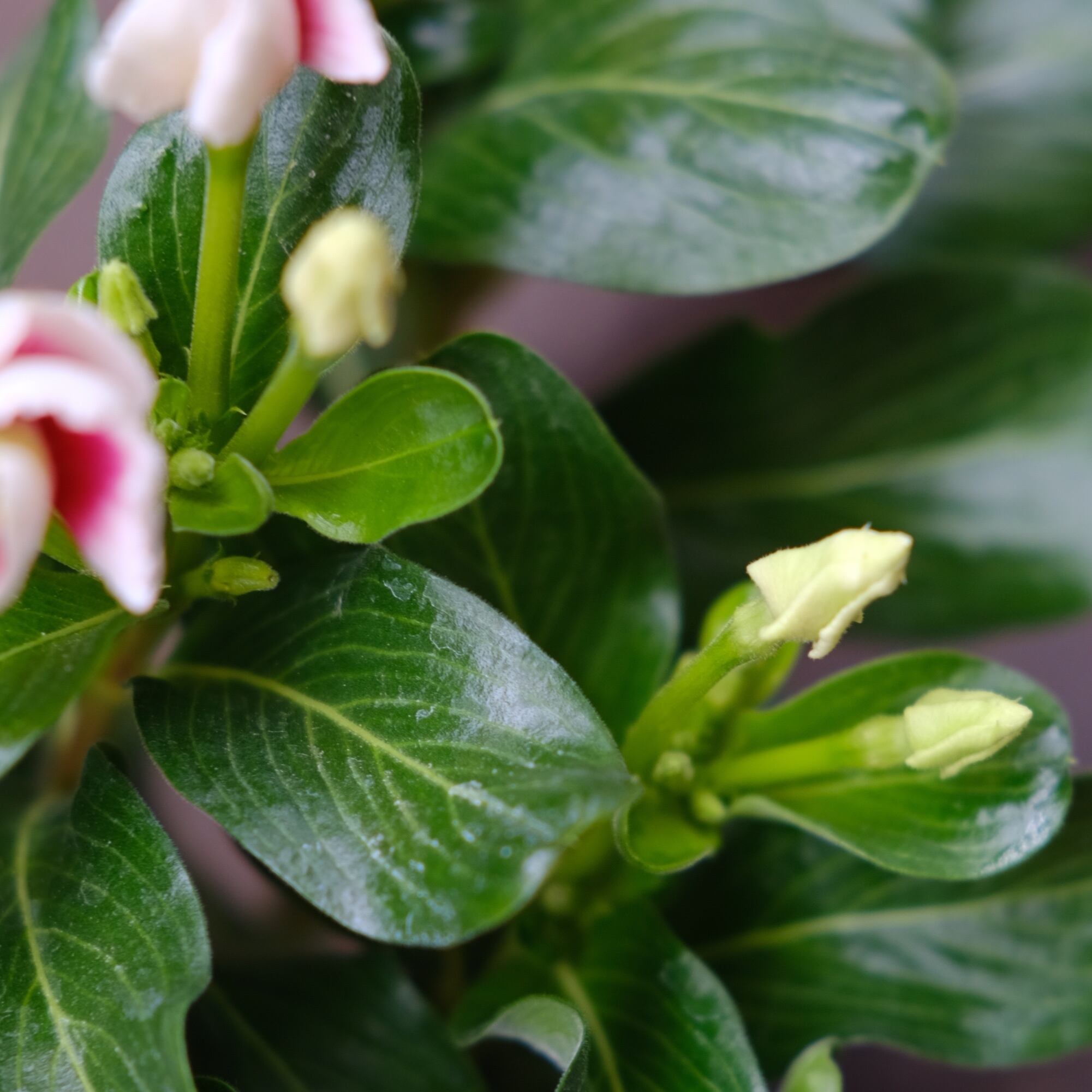 バラのようなチューリップのような、バラ咲きプリムラのようなお花を咲かせます。つぼみはクルクルとねじったような、風車のような、完全に開ききらない様子もまたとても可愛いです。一般的な日々草と同じ種には見えません。