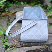10月4日配信の堀田店長が作成した寄せ植えで使用していたバッグ型のブリキ鉢のブラウンになります。