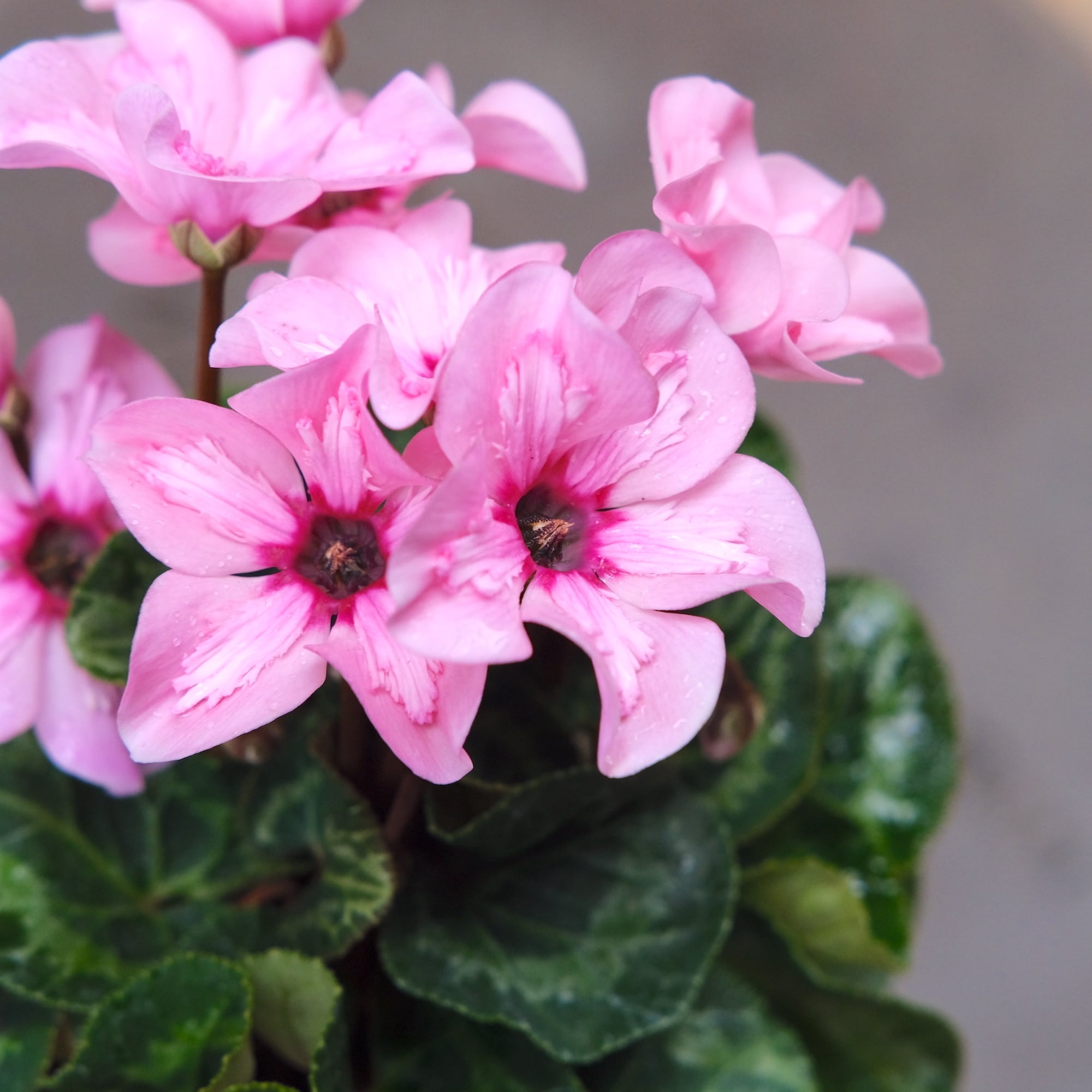 花弁の中心が羽毛状に盛り上がるクリスターターというタイプで、シクラメンには珍しい上向きに咲くユニークな品種です。花数が多く満開になるとブーケのようです。