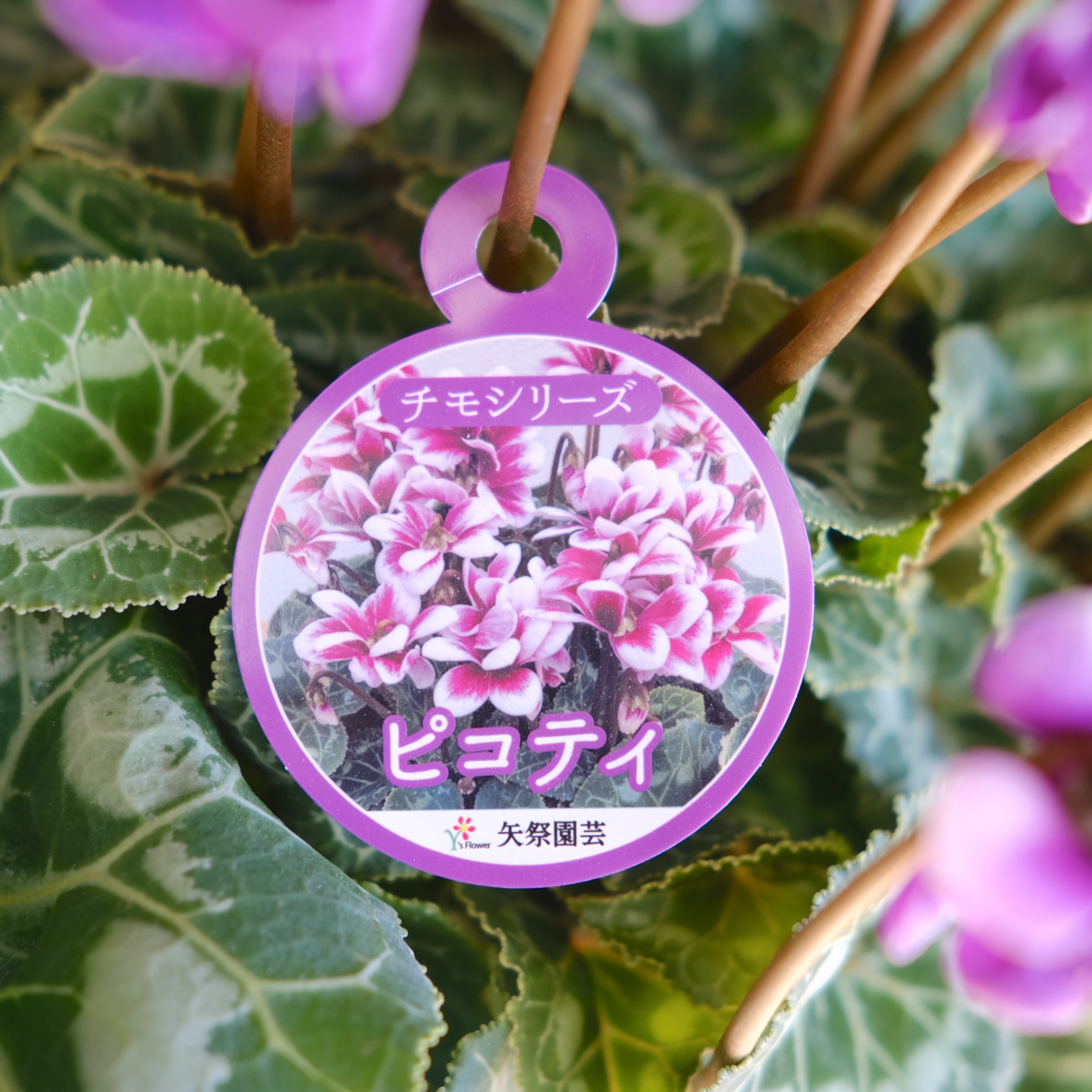 「チモ」は、矢祭園芸 金澤氏のミニシクラメンと、岩手県の故・橋本昌幸氏(育種家)のミニシクラメンを掛け合わせて誕生しました。掛け合わせに使用したミニシクラメンの片方は、厳冬期にマイナス15度もの寒さとなる岩手県の環境下で、温室の故障をも乗り越えて生き残った苗であり、結果とても寒さに強い品種が誕生することとなりました。