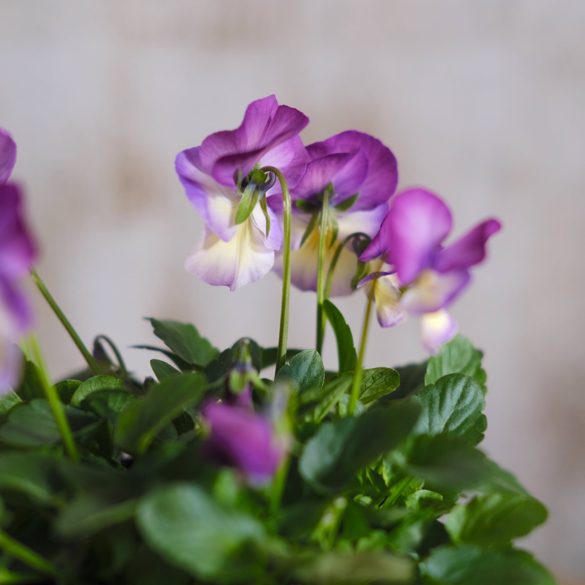 ビオラが最大の見頃を迎える4月頃、気温が上がると伸び上がってきてしまうビオラが多い中、ディージェイは低い位置を保ってカチッと咲き続けてくれます。環境等が合えば初夏まで綺麗に咲き続けてくれます。