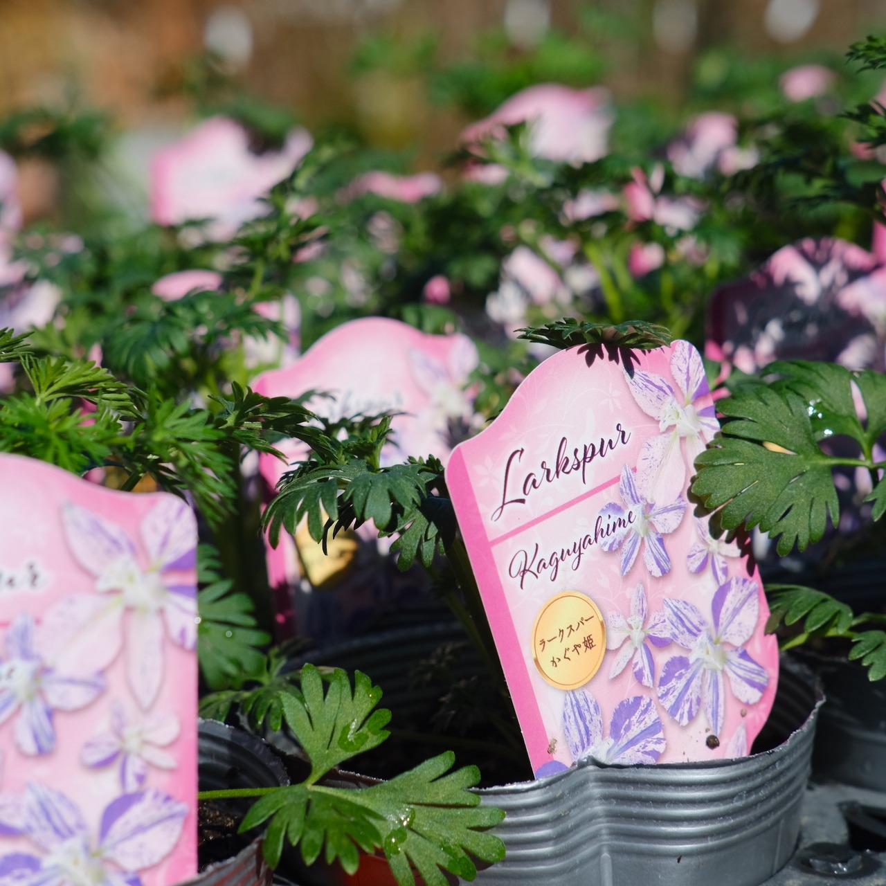 ピンクとパープルの絞り模様が出るとても珍しいラークスパーです。園芸王国パスタイムの安西さんが発見し、見元園芸さんが生産したものです。